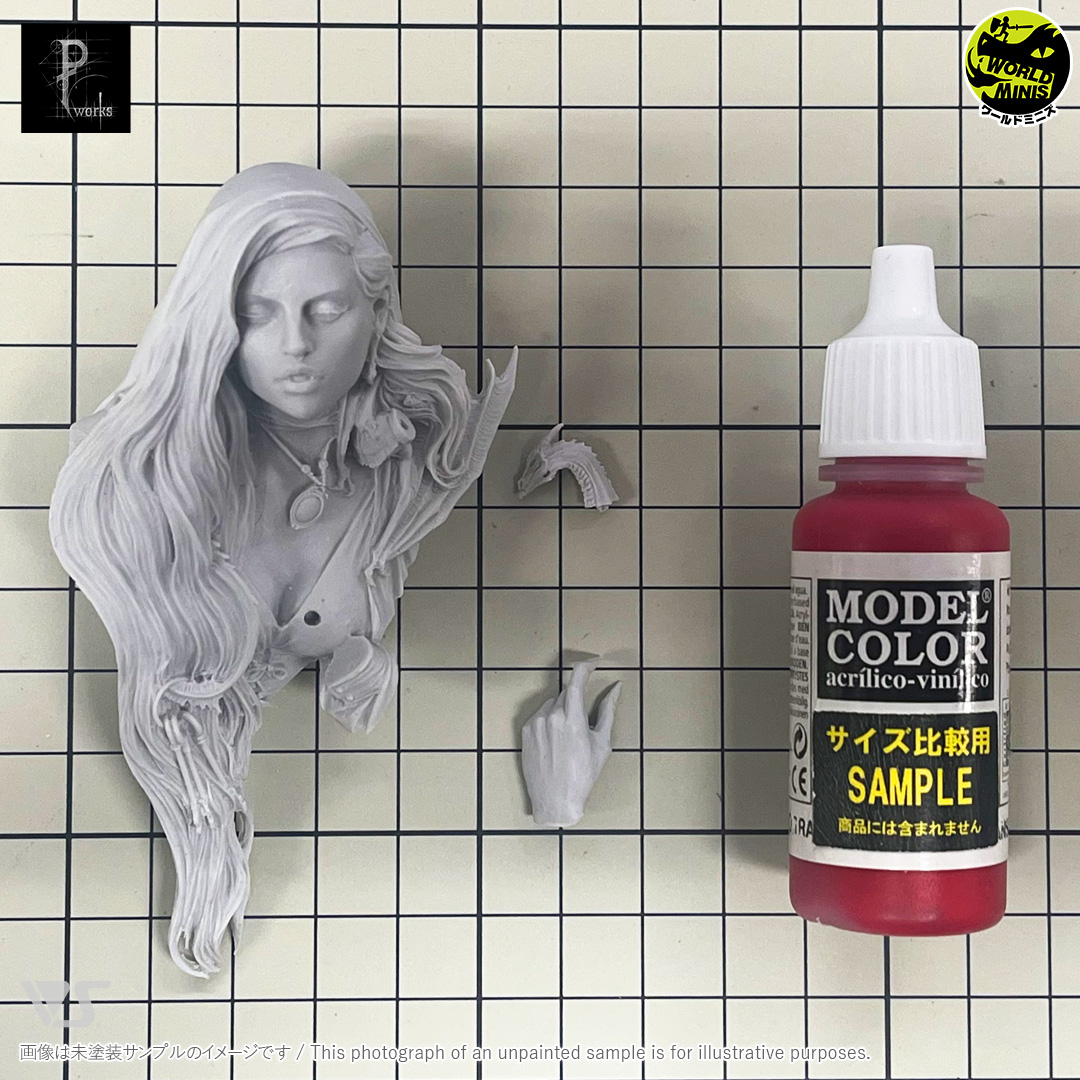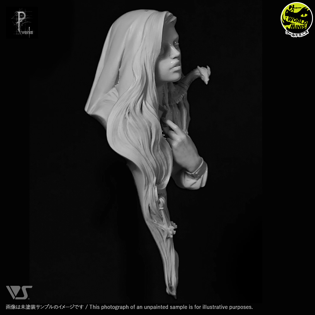 髪の毛の中に紛れながら首に絡まる小さなドラゴンがポイント!ファンタジー感あふれる胸像です。