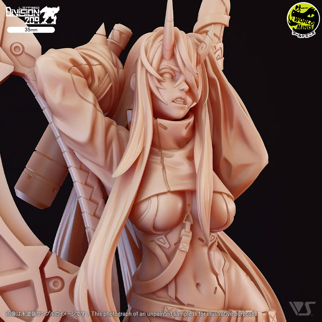 酒呑童子をモチーフにした可愛くてセクシーな女性ミニチュアです。 イバラキ(35mm)専用ベース付属。 同時発売シュテン(35mm)と並べて飾る事が出来ます。