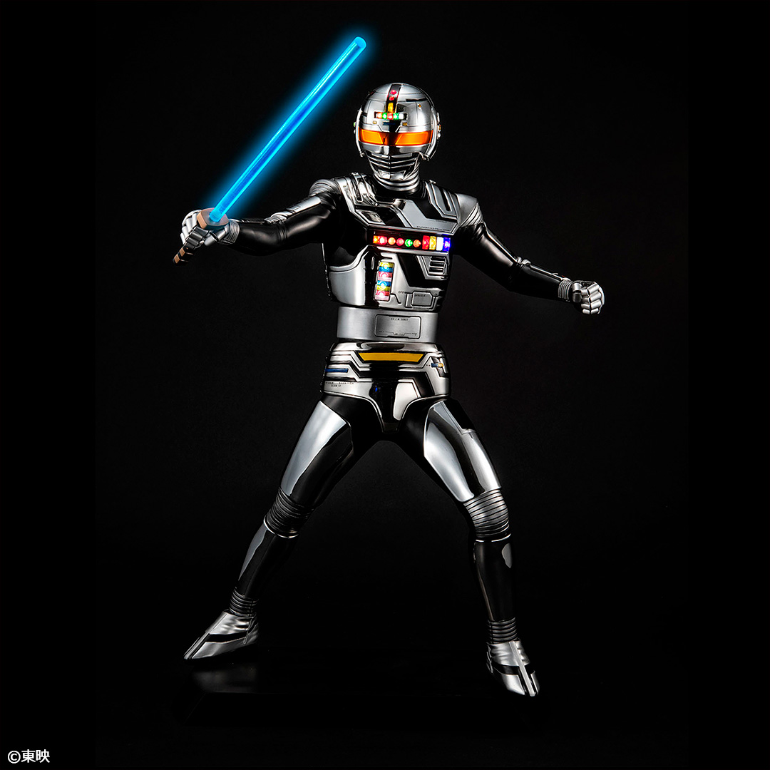 '82年、その原点として登場以来、根強い人気を誇る初代「宇宙刑事ギャバン」が40㎝のビッグスケール、メッキ輝く至高のディテールと電子ギミックを兼ね備えたUAシリーズに再び登場! 作中クライマックスシーン等で使用される「超アップ用スーツ」同様、真空蒸着メッキで再現された「コンバットスーツ」は豪華美麗、迫力の逸品! また、マスク、細部ディテールやスーツ随所に施された細かなマーキング類も徹底再現!
