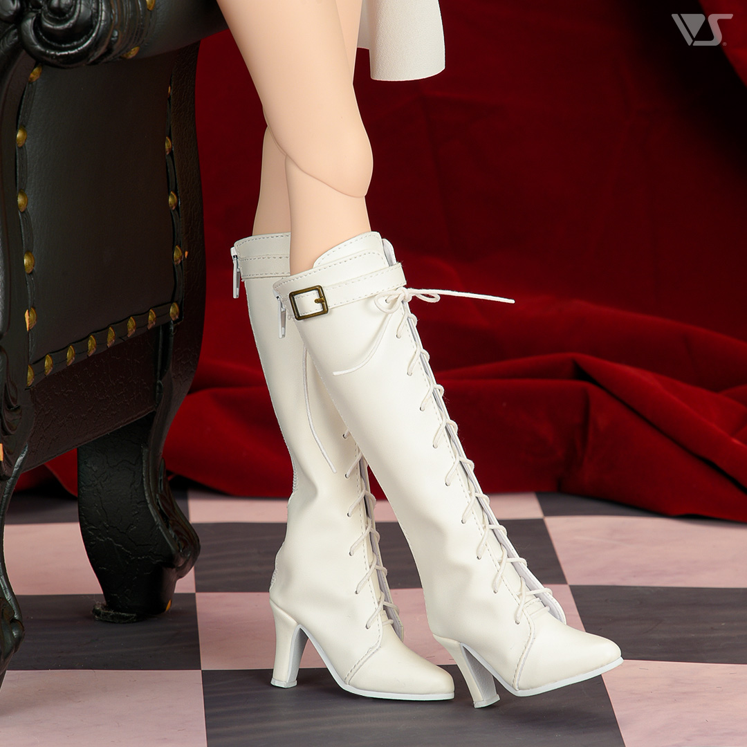 白の編み上げロングブーツでスタイルアップ!