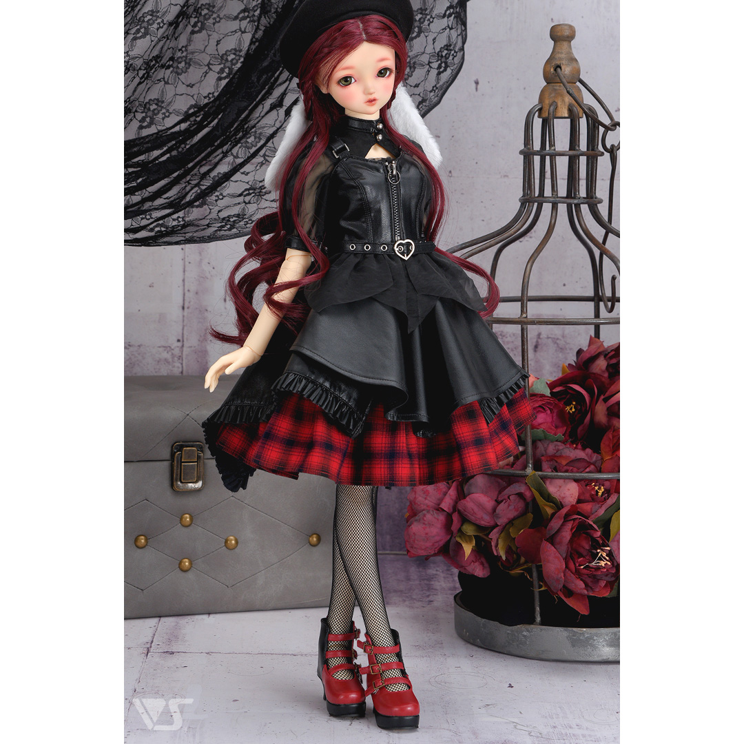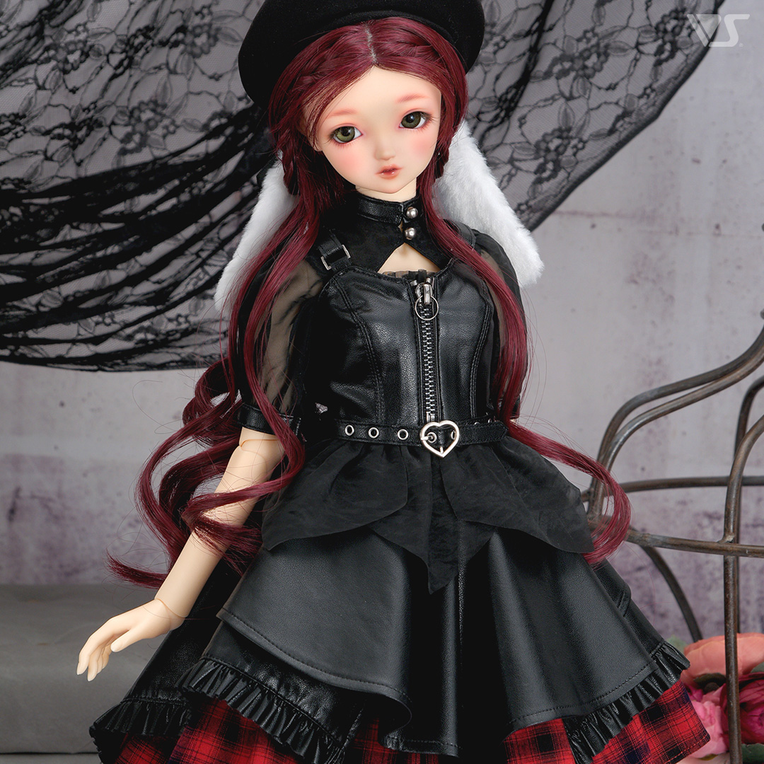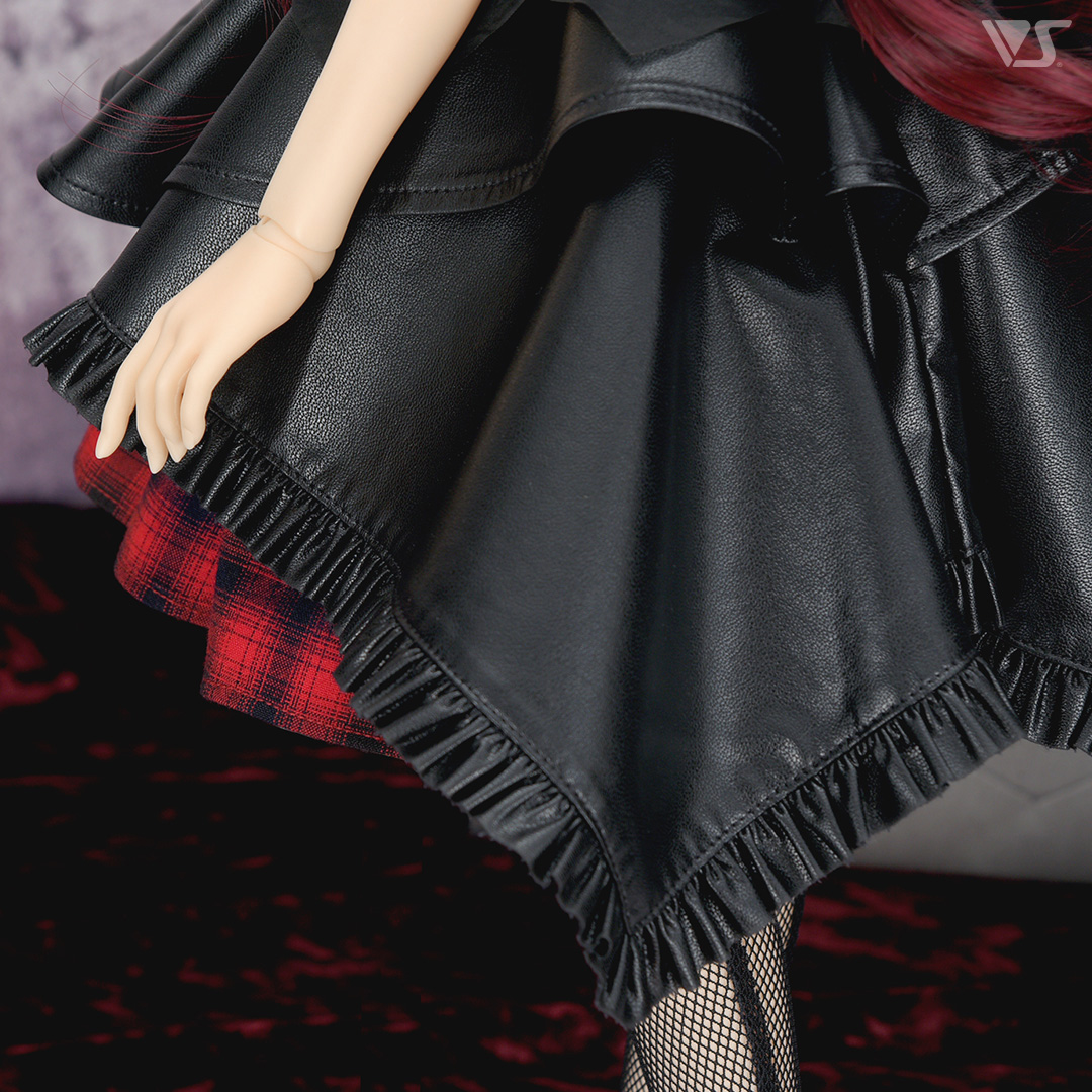 ・スカートの裾には、レザーのフリルで甘さもプラス。