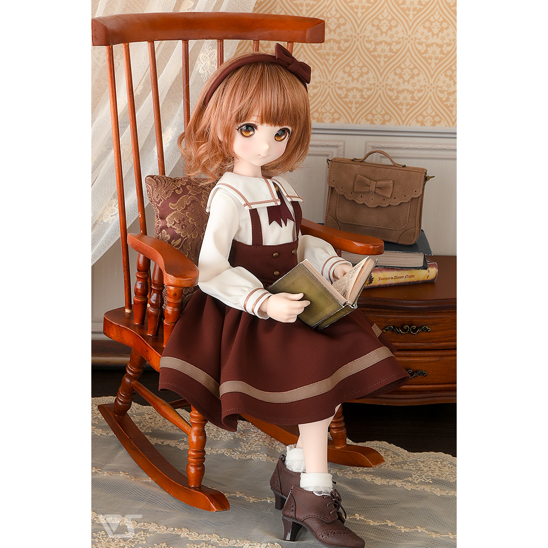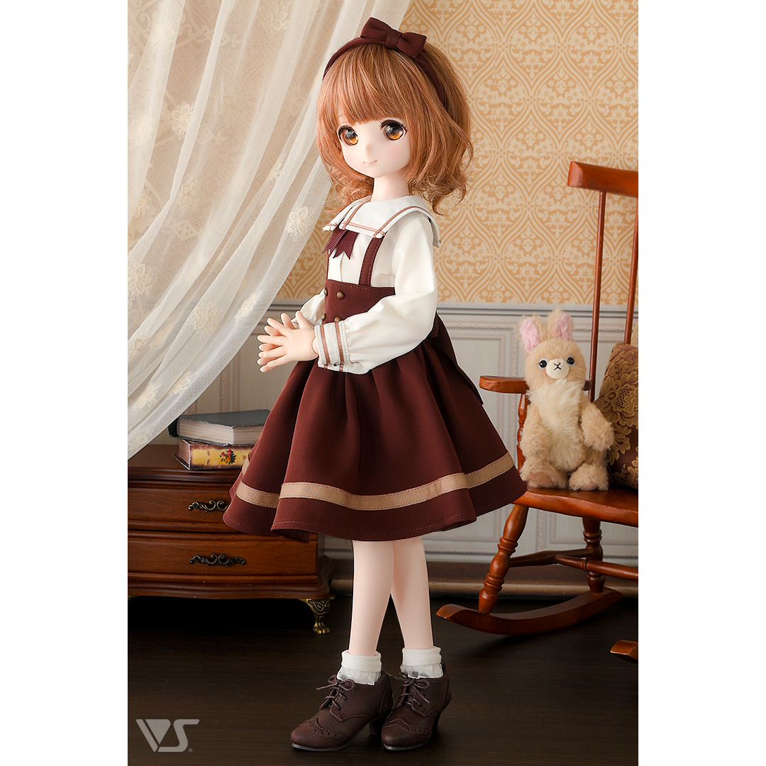 温かいココアカラーが魅力、スウィート&キュートなサスペンダーセットです♪胸元のリボンやラインの入った襟・スカートがチャームポイント。「ボルドーサスペンダーセット・ミニ」とのお揃いコーデも楽しい一着です!