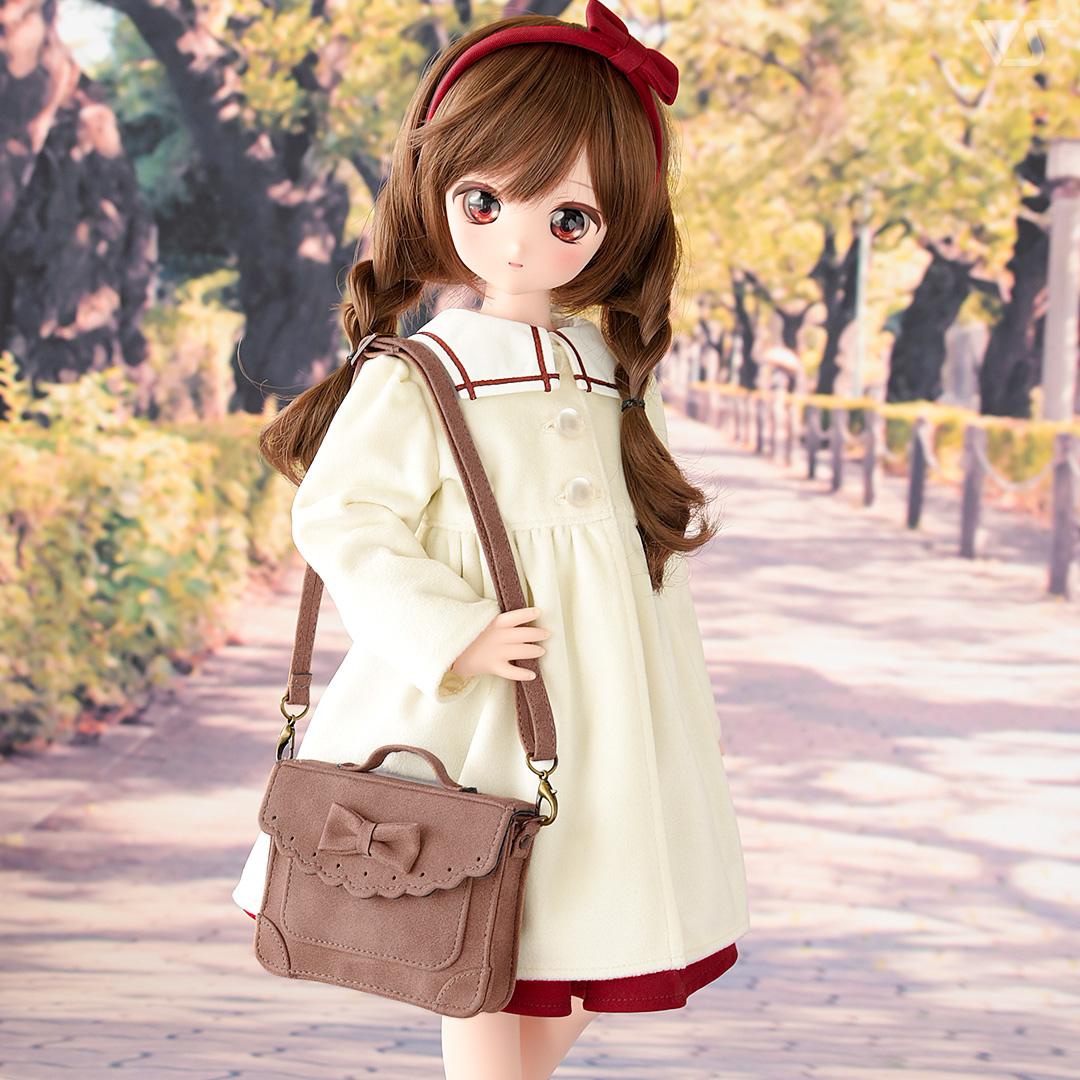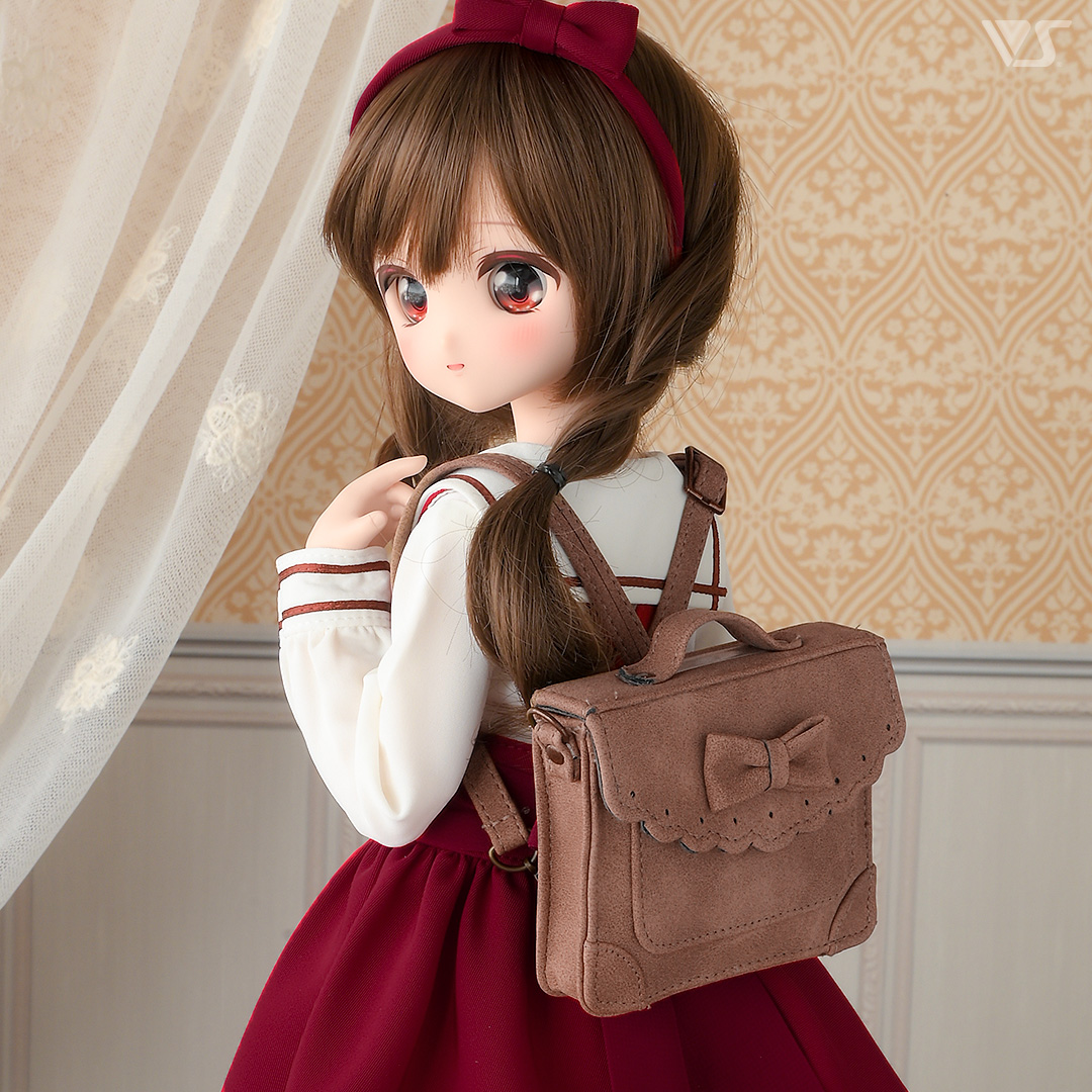 フラップ部分の縁はスカラップ、リボンの装飾で可愛らしいデザインにしつつも、使用している生地を統一して上品な雰囲気のバッグに仕上げました。ショルダーベルトを外したり、付け替えることによってドレスのイメージに合わせた持ち方ができるのもポイント♪リュックの仕様にする際は、背中側についているDカンにベルトを通して、ベルト端のフックを下側のDカンに付けてくださいね。