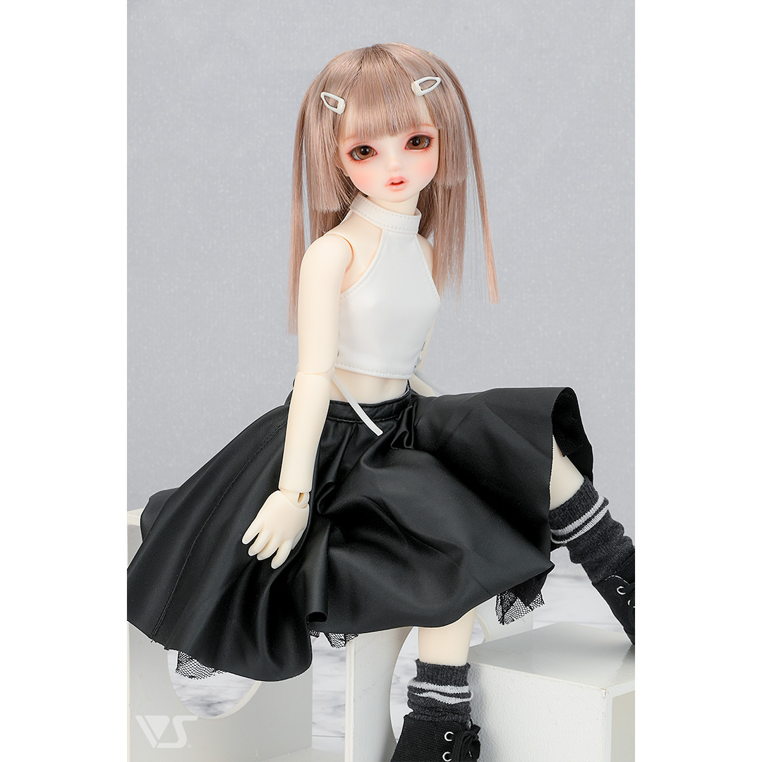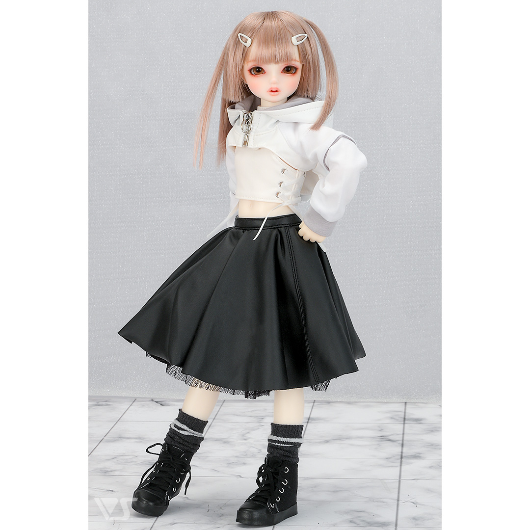 黒いレザースカートはハリがあるので、フレアシルエットが綺麗にでます!裾から覗く黒レースや、ウエストの見えるデザインなど、カッコよさの中にも女の子らしい要素がしっかりと詰まったドレスです♪