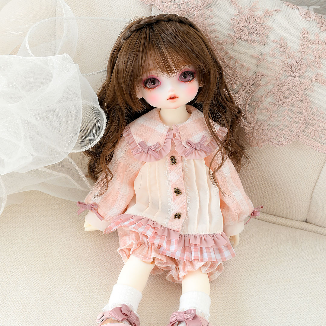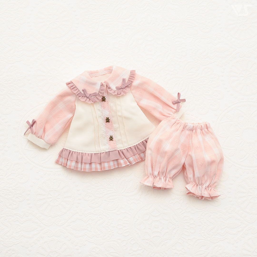 たくさんのくまさんモチーフに大きな丸襟、甘い色合いでまとめて、可愛いをぎゅっと詰め込みました♥お揃いながらも、ドレスのサイズに合わせてデザインを少しずつ変えています。幼SDサイズはブラウス裾の二段フリルとふっくらドロワーズがポイントです♥