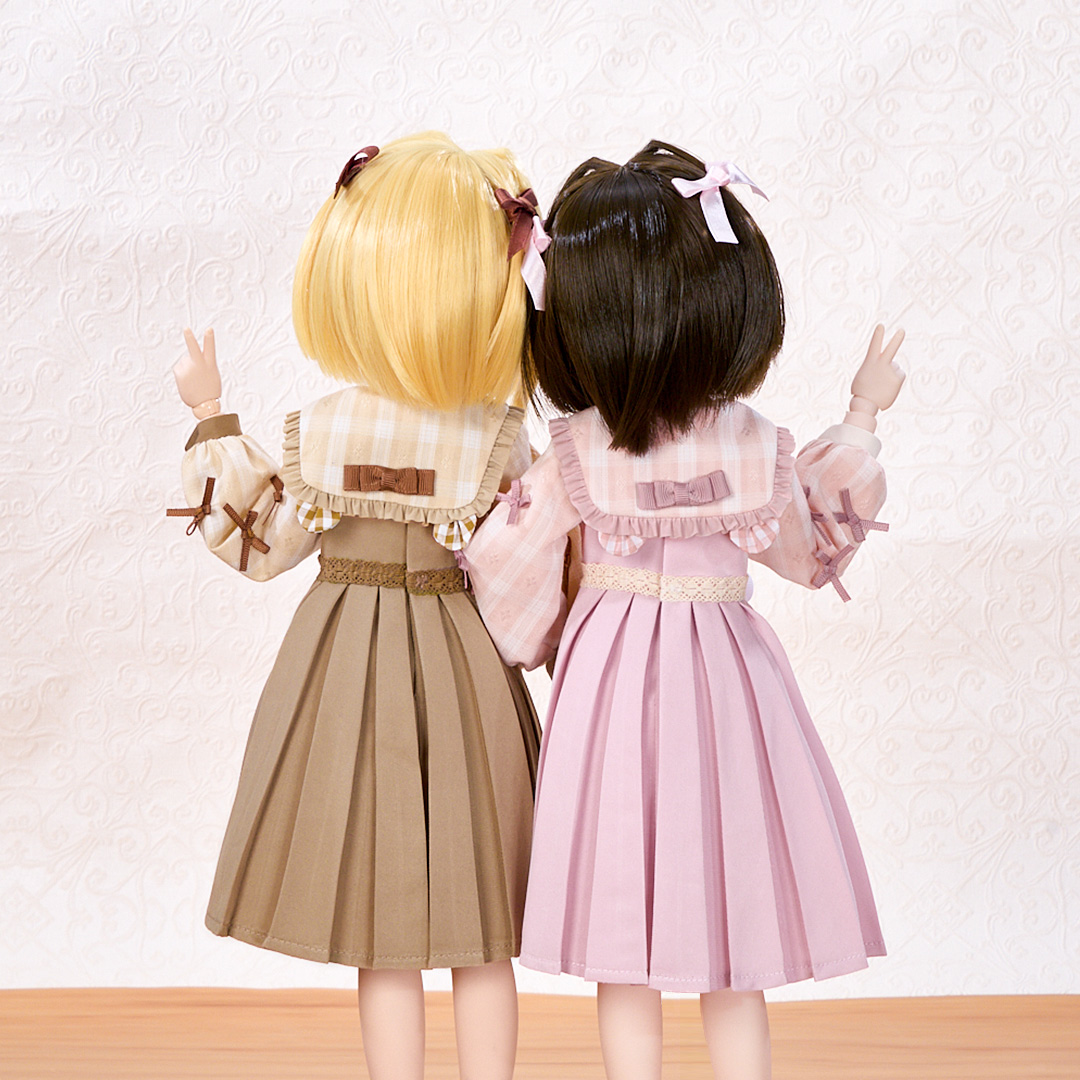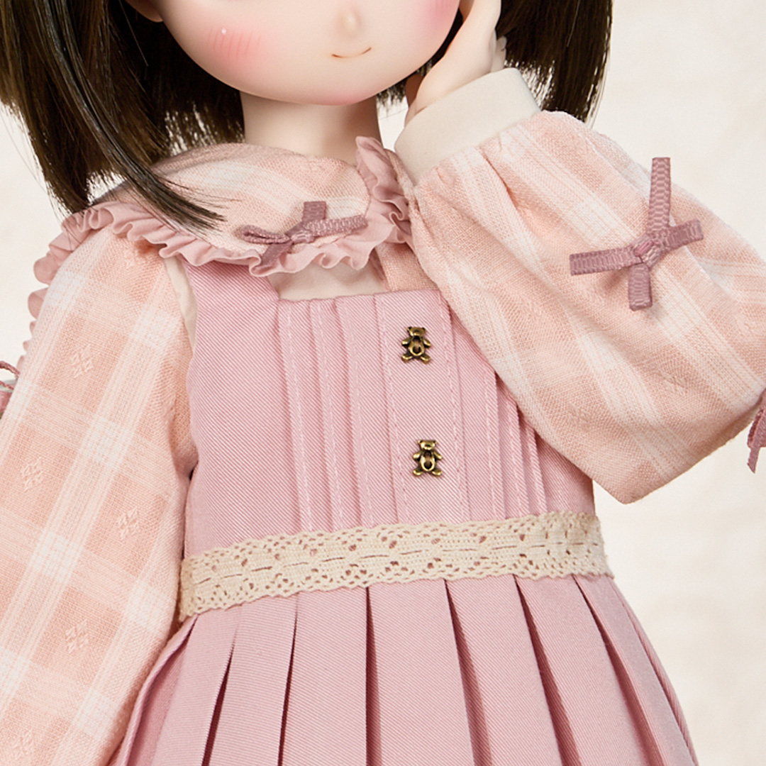 たくさんのくまさんモチーフに大きな丸襟、甘い色合いでまとめて、可愛いをぎゅっと詰め込みました♥お揃いながらも、ドレスのサイズに合わせてデザインを少しずつ変えています。SDMサイズはボックスプリーツのワンピースタイプ。形を保ちつつもスカートの張りが出すぎない生地を使用しているので、座りのポージングも可愛いですよ♪