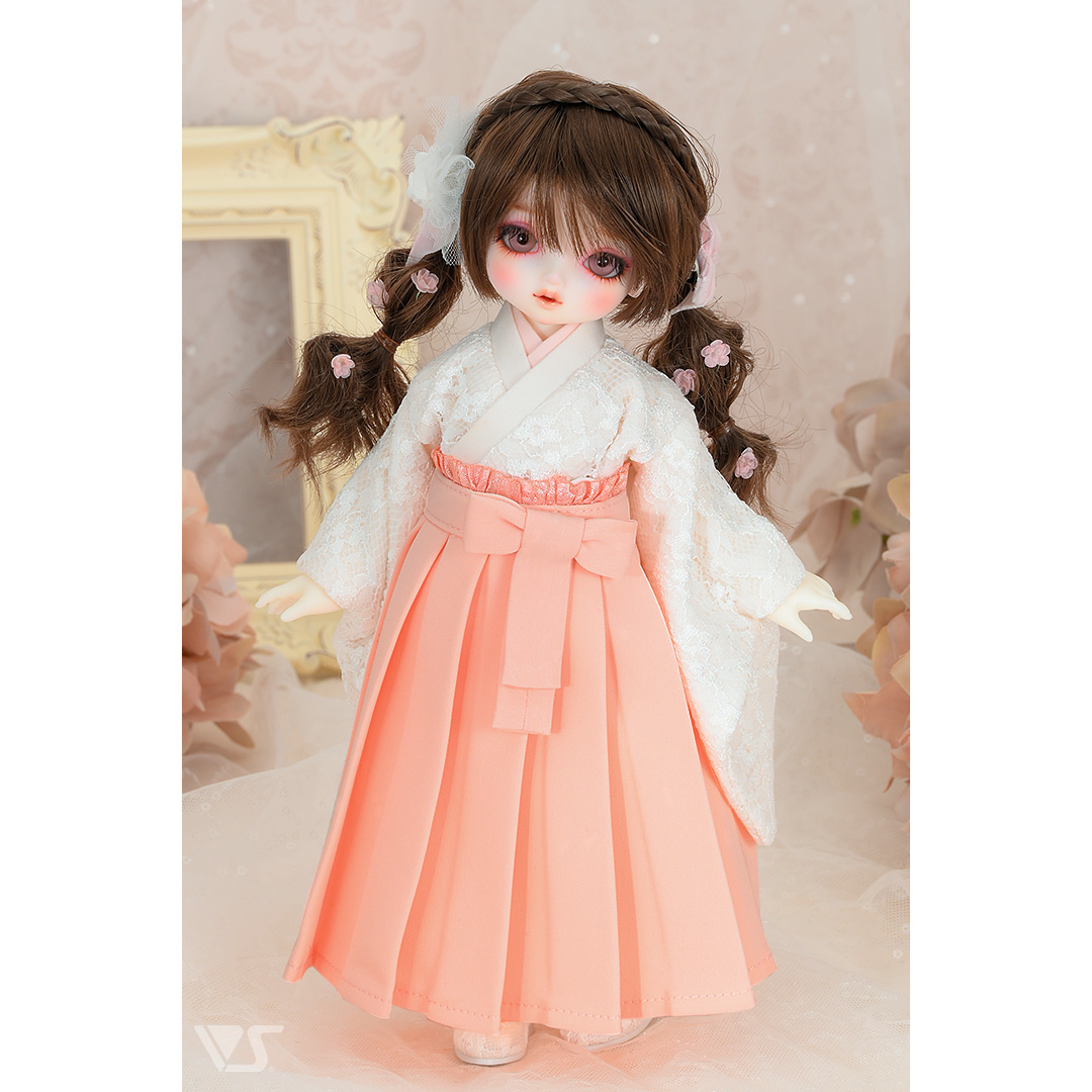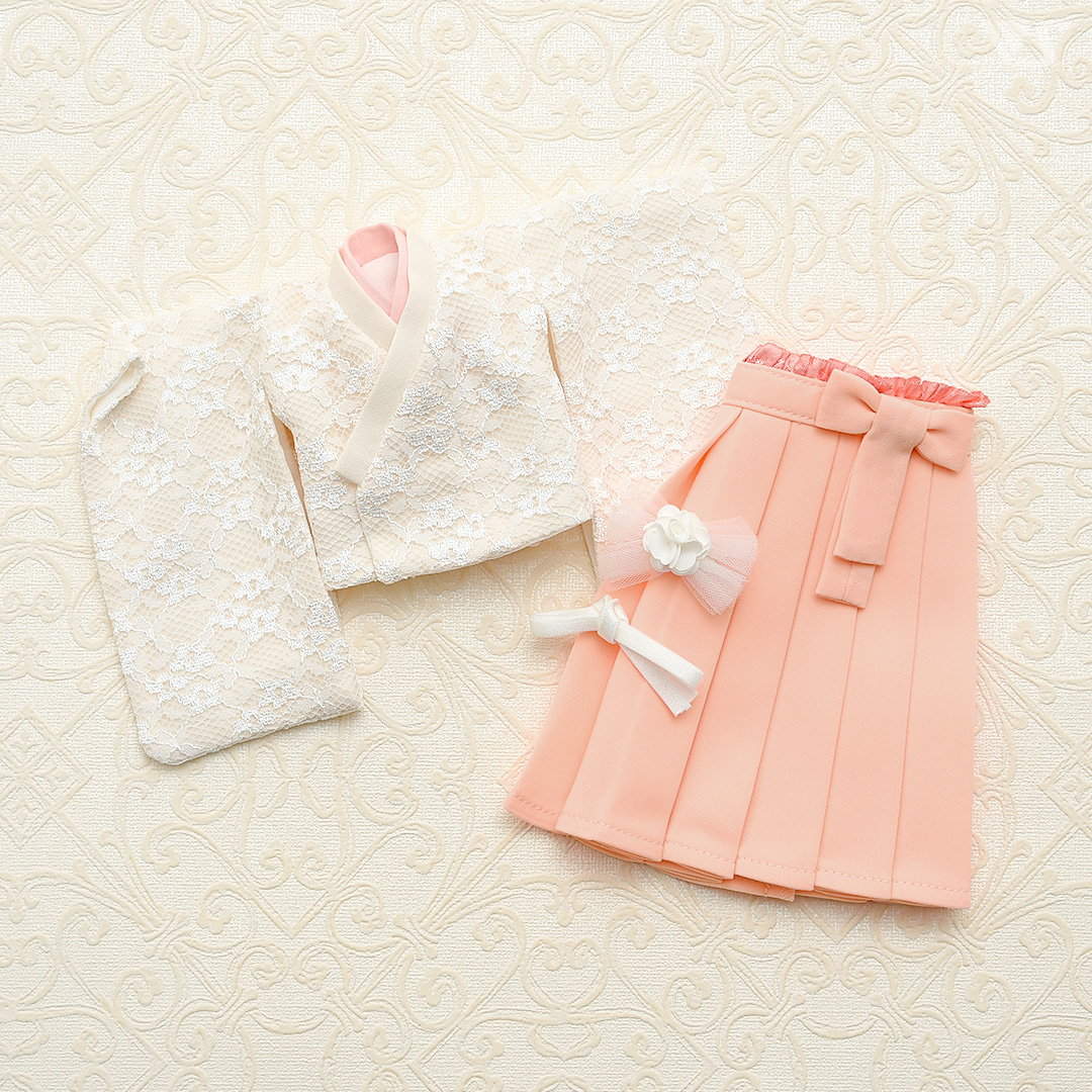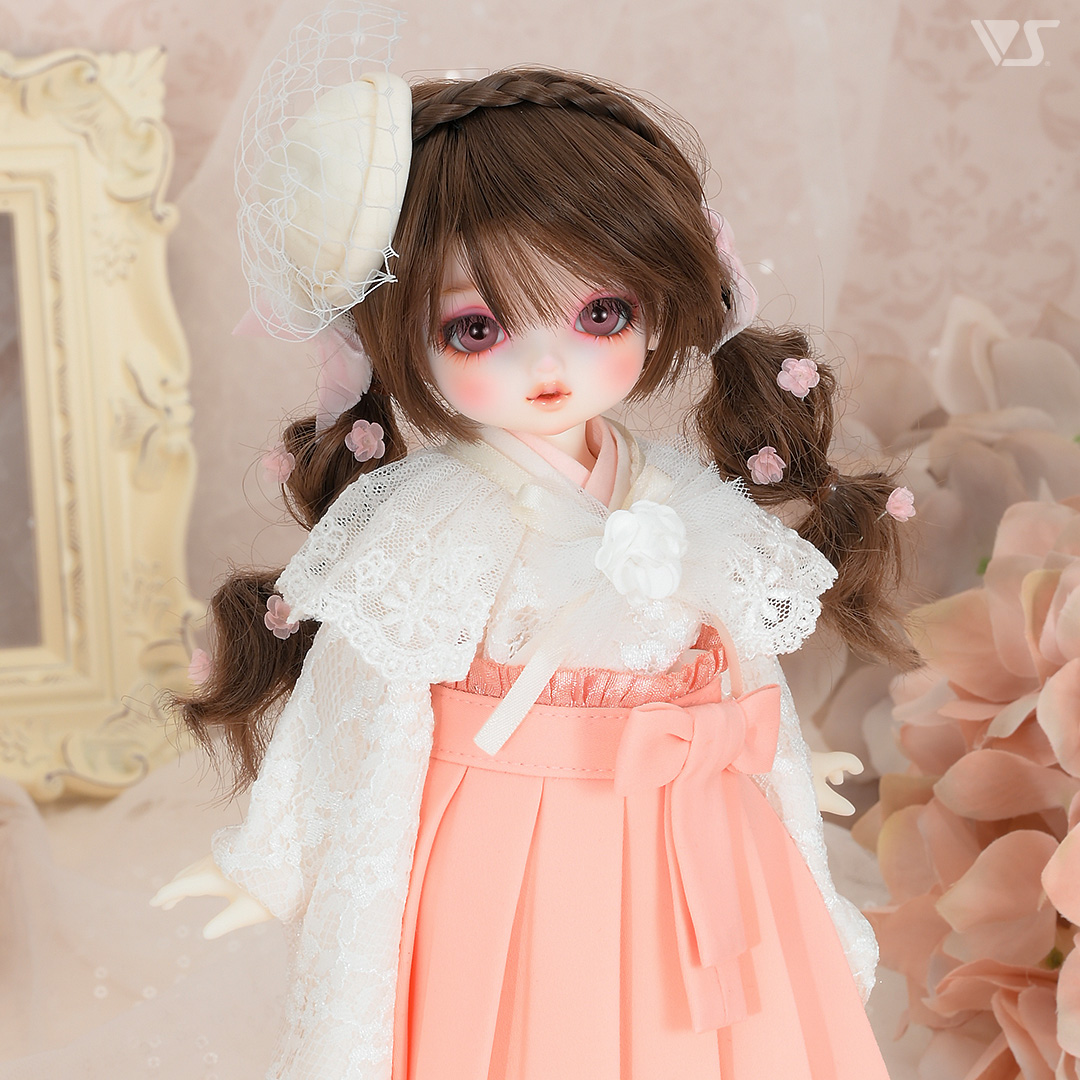 柔らかなピンク色は、まさに春にピッタリの装い。繊細なレース生地が砂糖菓子のような甘さでドルフィー達を包んでくれます。まさに春の妖精といった雰囲気のドレスでおうちの子達を着飾ってあげると、とっても素敵だと思います。付属のリボン飾りはヘアアクセサリーとして、また帯のところにつけてあげても◎