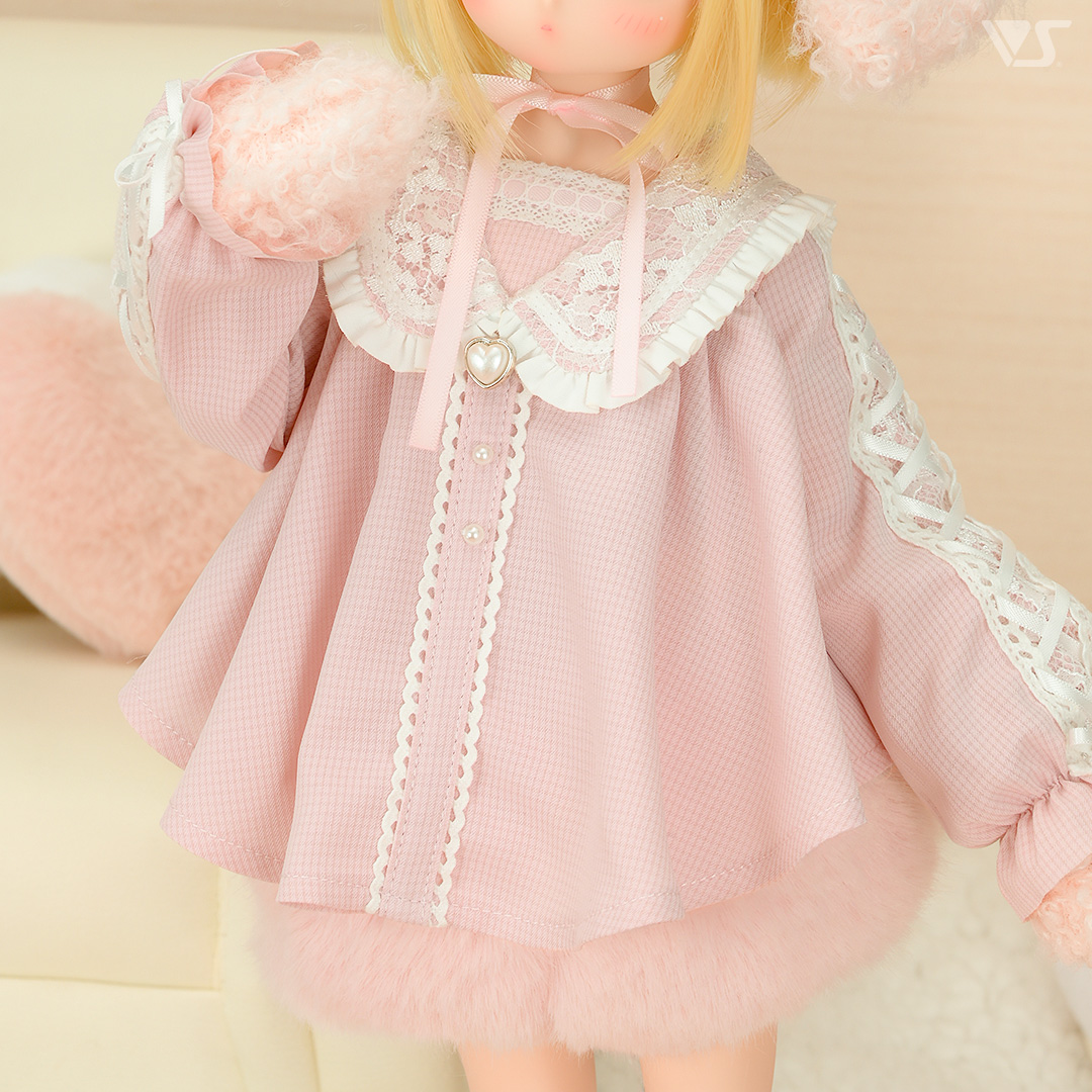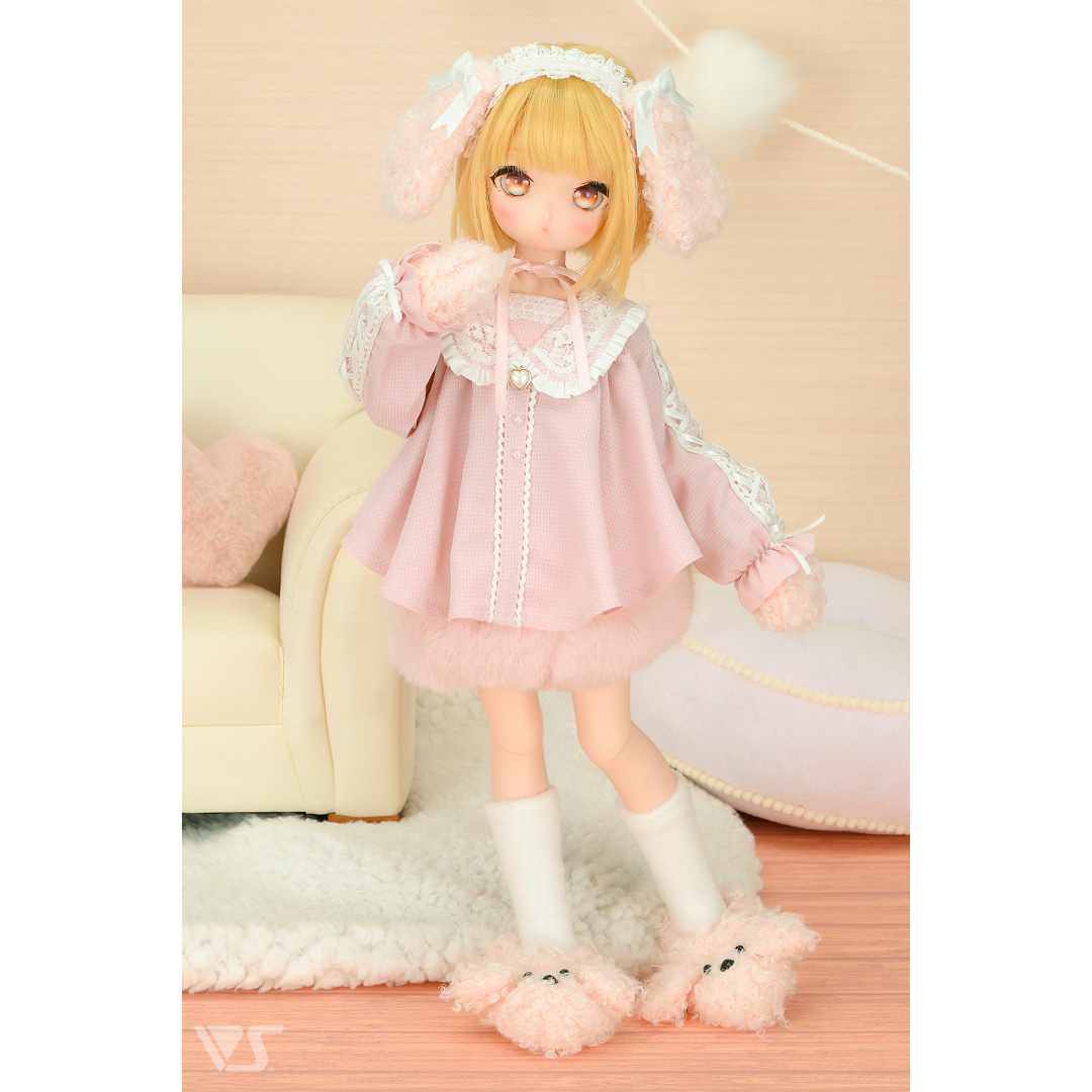 手袋とつけ耳と同じファー素材の「プードルルームスリッパ(別売)」とあわせて全身プードルコーデもとってもキュート♪お部屋でのひと時を可愛く彩ります。ワンピース襟元や袖のフリルに加え、裾のドレープも可愛いポイント!もこもこのファーパンツがのぞくようにキレイに拡げてあげると引き立ちますよ♪