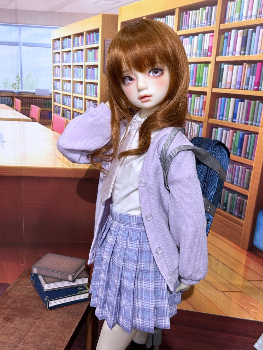 淡い紫とピンクのカラーがドルフィーの肌を明るく見せます。お日様が輝くこれからの季節にぴったりですね。大好評の「女子高生セット(水色)」と組み合わせてコーディネートするのもおすすめですよ♪