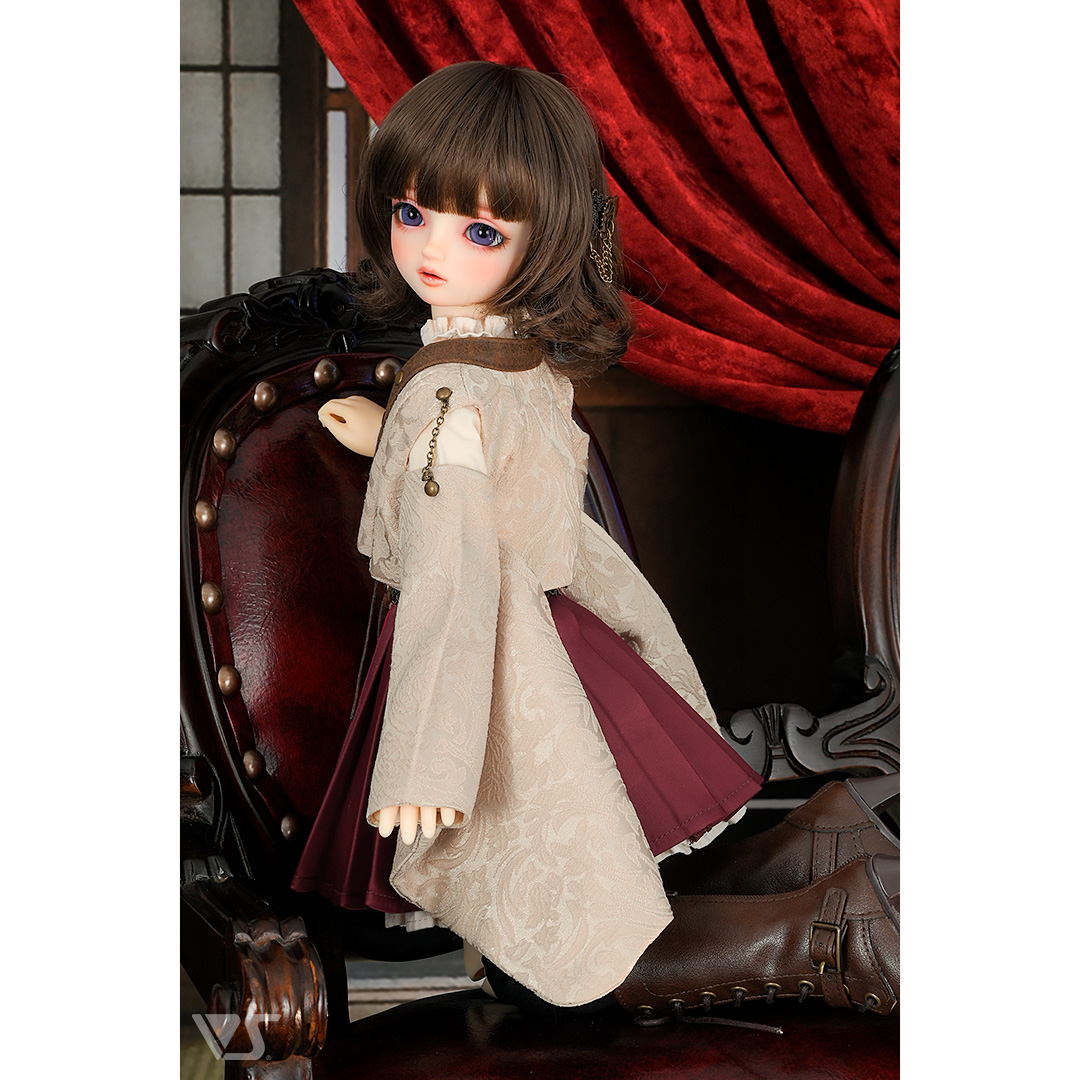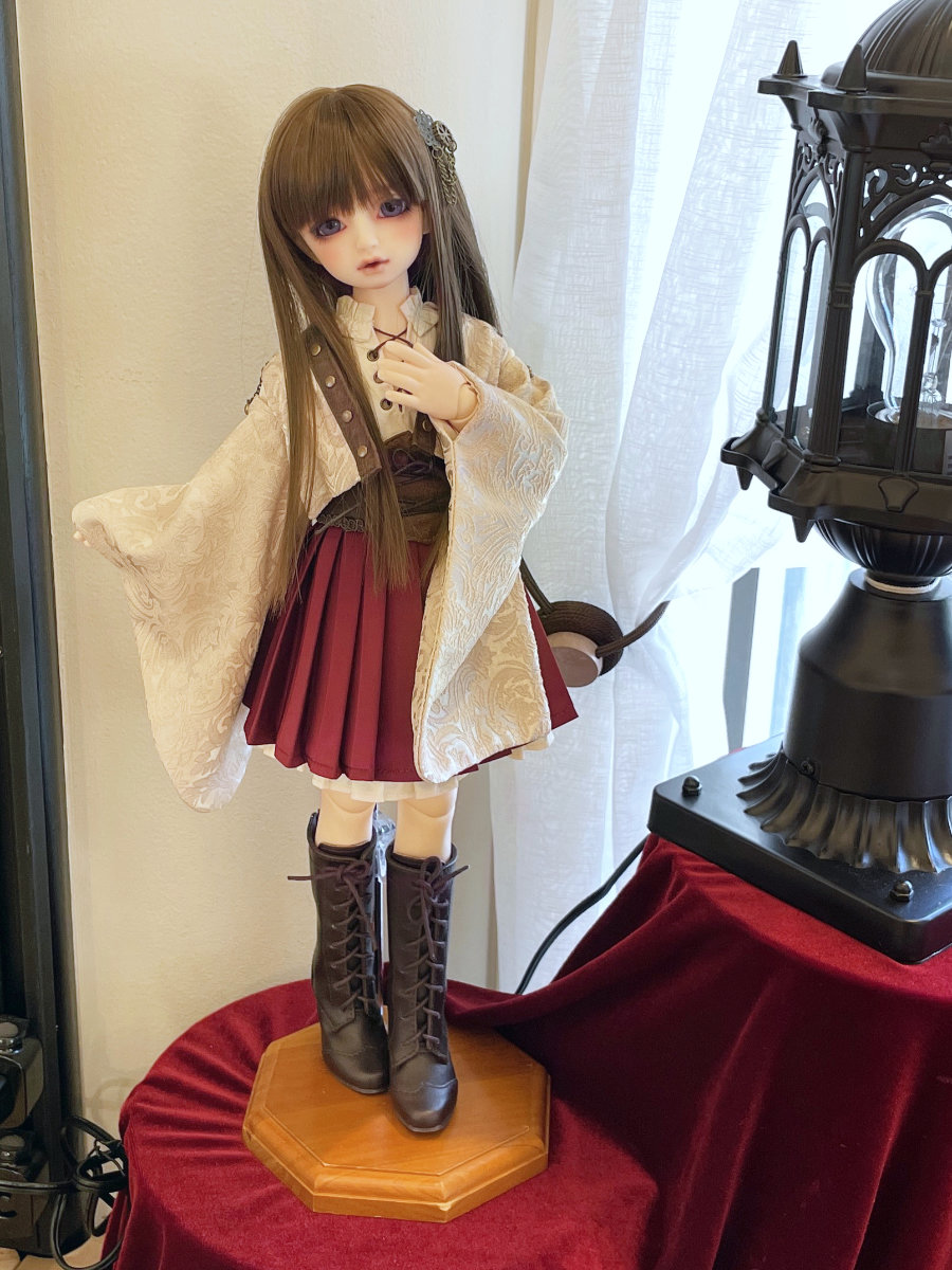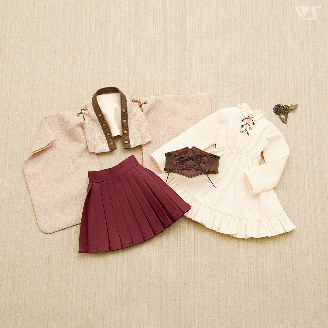 ひと目で和の要素が見て取れるシルエットにも関わらず、コルセットや羽織のスタッズ等、アンティーク調な西洋要素が見事に溶け込んでいます。SDMサイズはミニスカートが子供らしい元気な印象を演出します。和洋問わず小物を合わせやすいので、コーディネートを楽しむ上でとても懐の広いドレスとなっております。