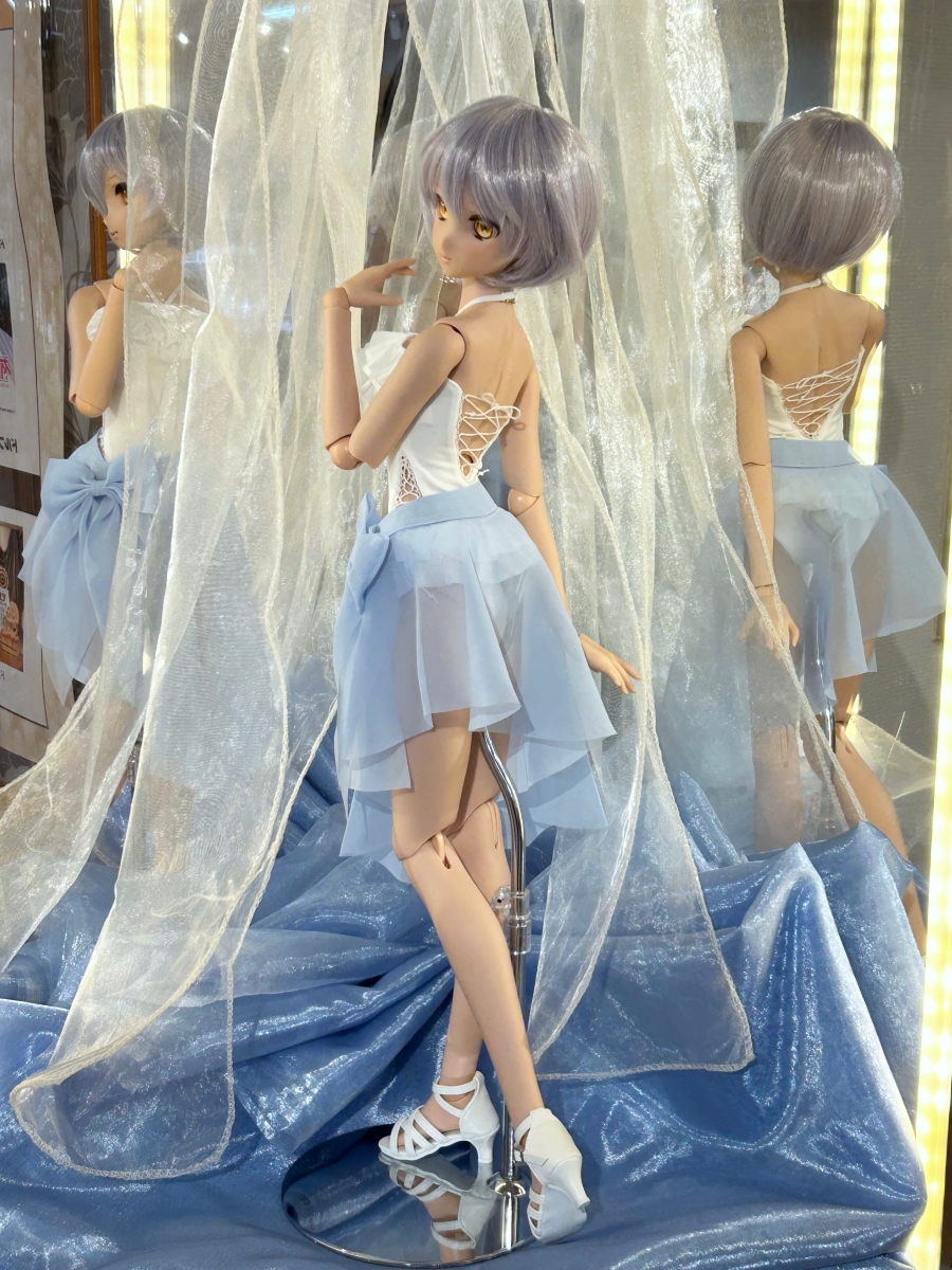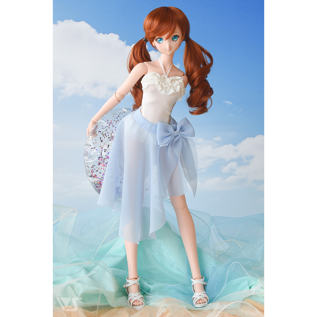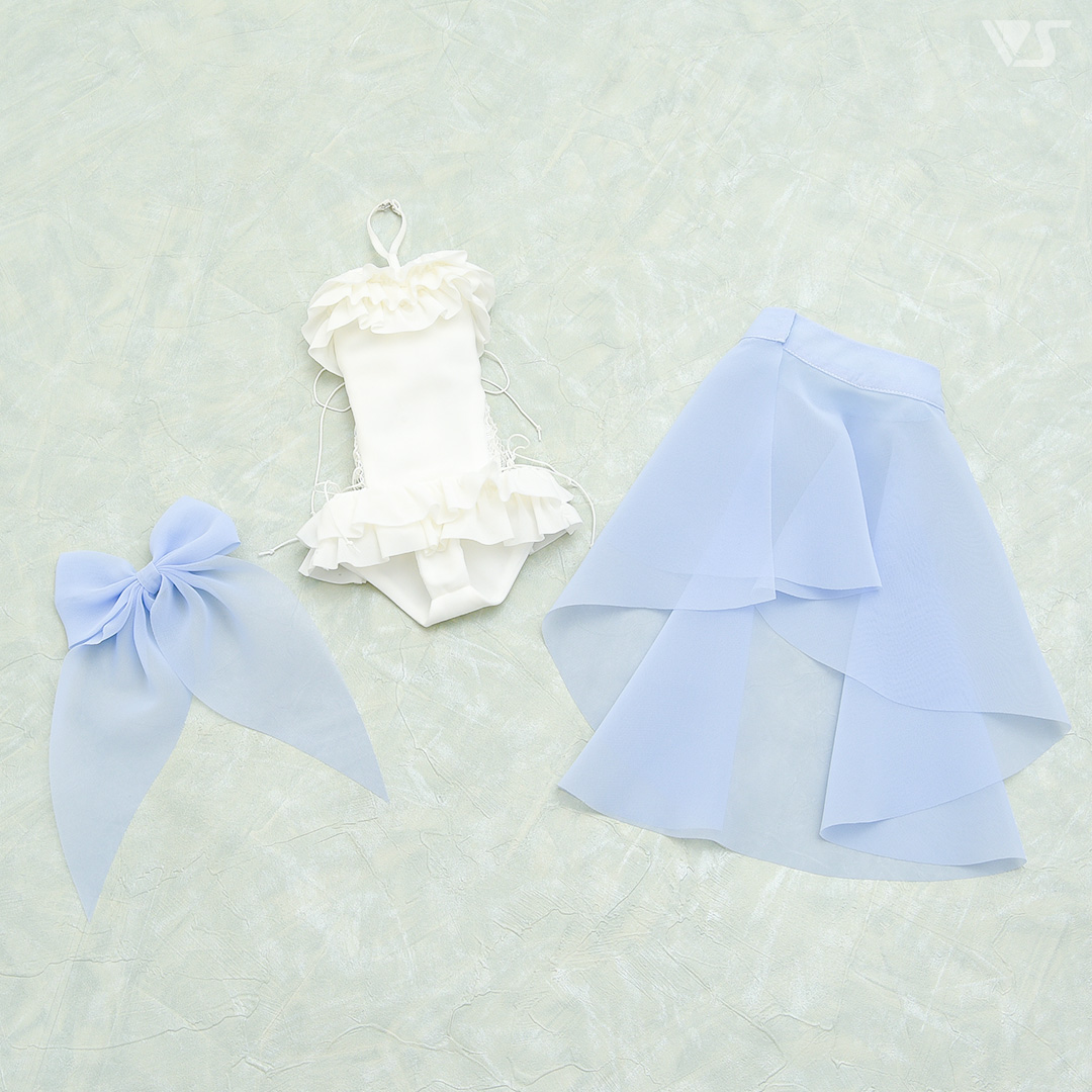 背中と腰の編み上げ部分で調整が出来るので、どんな胸のサイズの子でも大丈夫!実際の水着さながらな質感のストレッチ素材で、ボディにもピッタリフィットします♪程よい透け感のパレオ&リボンは、アレンジ自在で楽しめますよ!