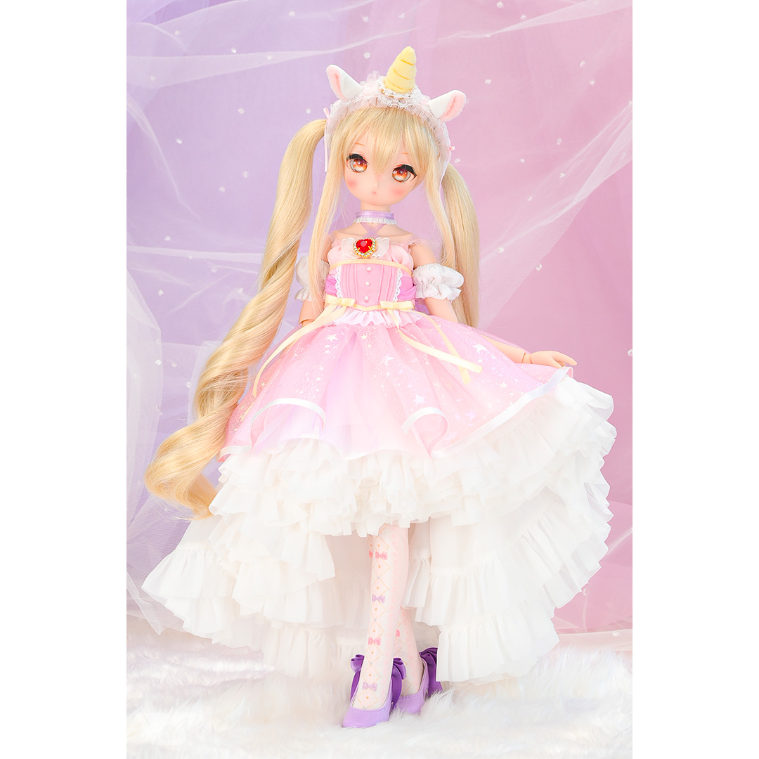 柔らかいチュール生地やキラキラとしたオーガンジー生地、甘いユニコーンカラーでまとめたキュートなドレスをお仕立ていたしました♡