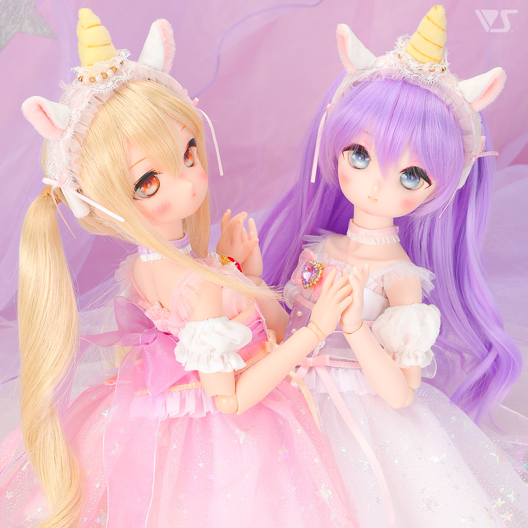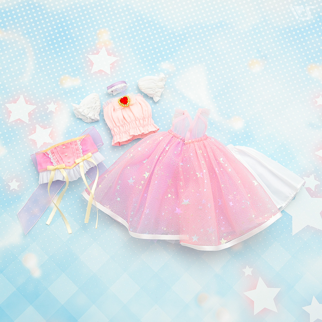 見る角度によって、スカートの色合いやお星さまの輝きが違って見える、まさにドリーミィなドレスセットです☆