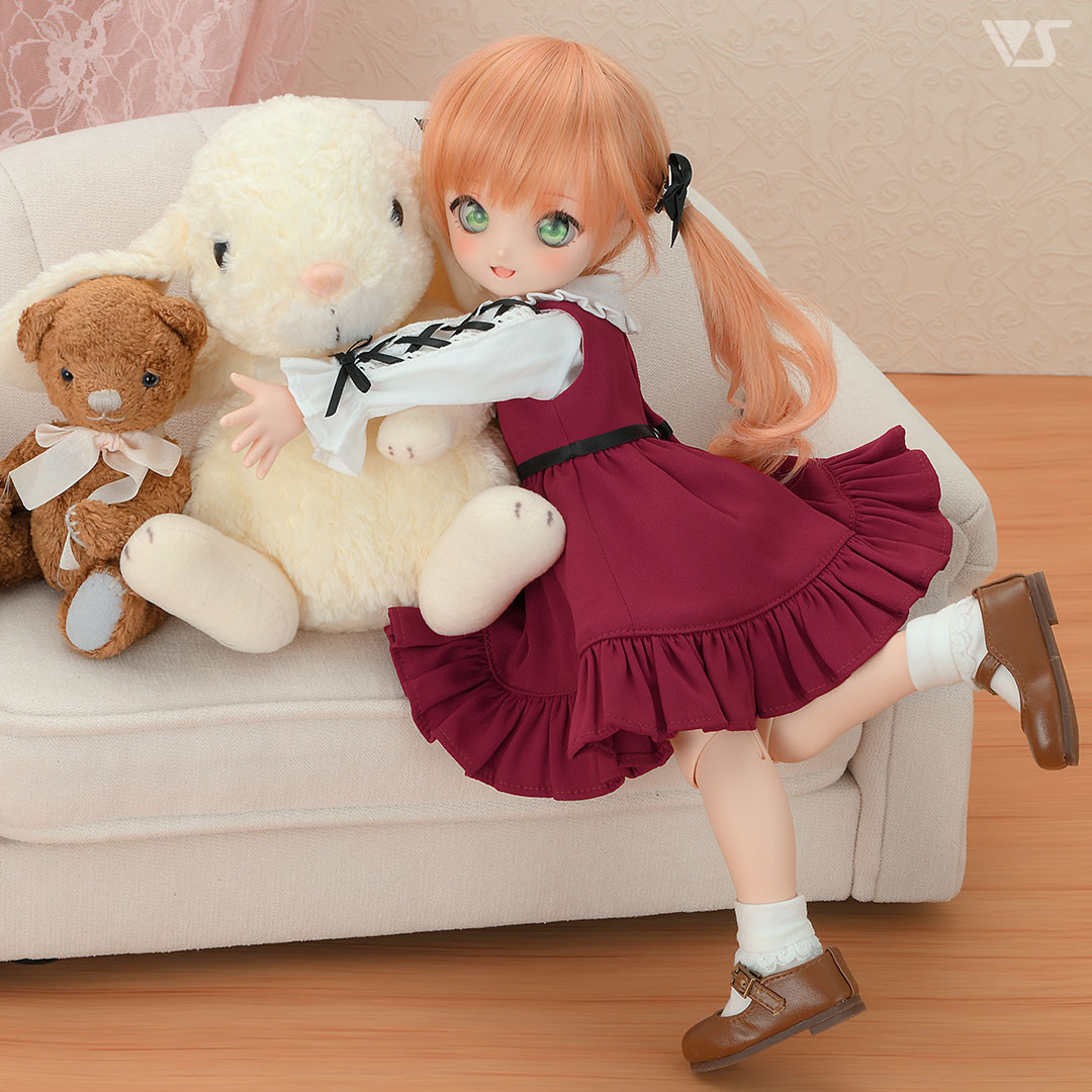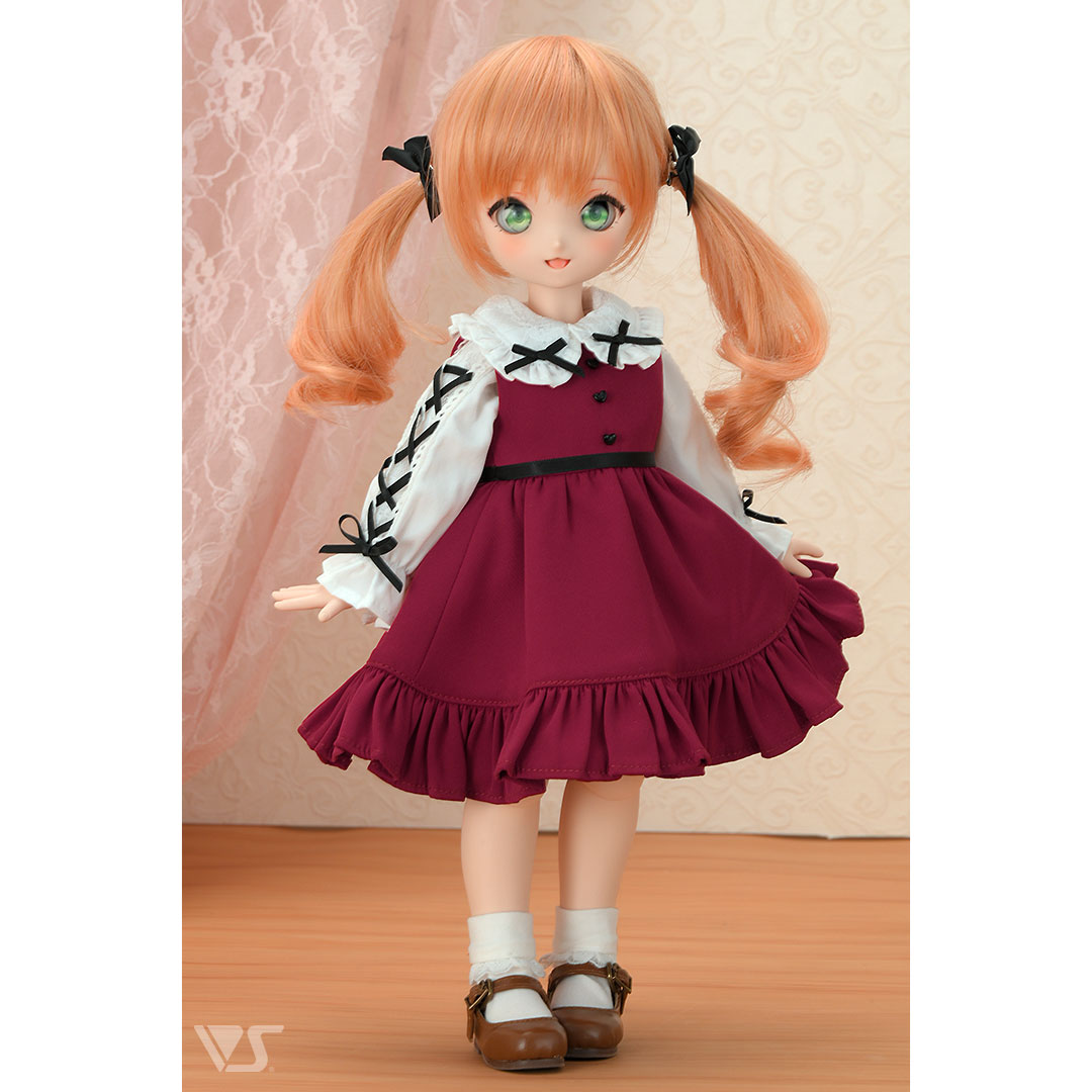 過去にMDDサイズで登場していたジャンスカセットが、ちみっこDD専用サイズで登場!これからの季節にピッタリのボルドーと、ちりばめられた黒のリボンがとってもカワイイ一着です♪胸元の黒ボタンがハートになっているのもキュートなポイントですよ!