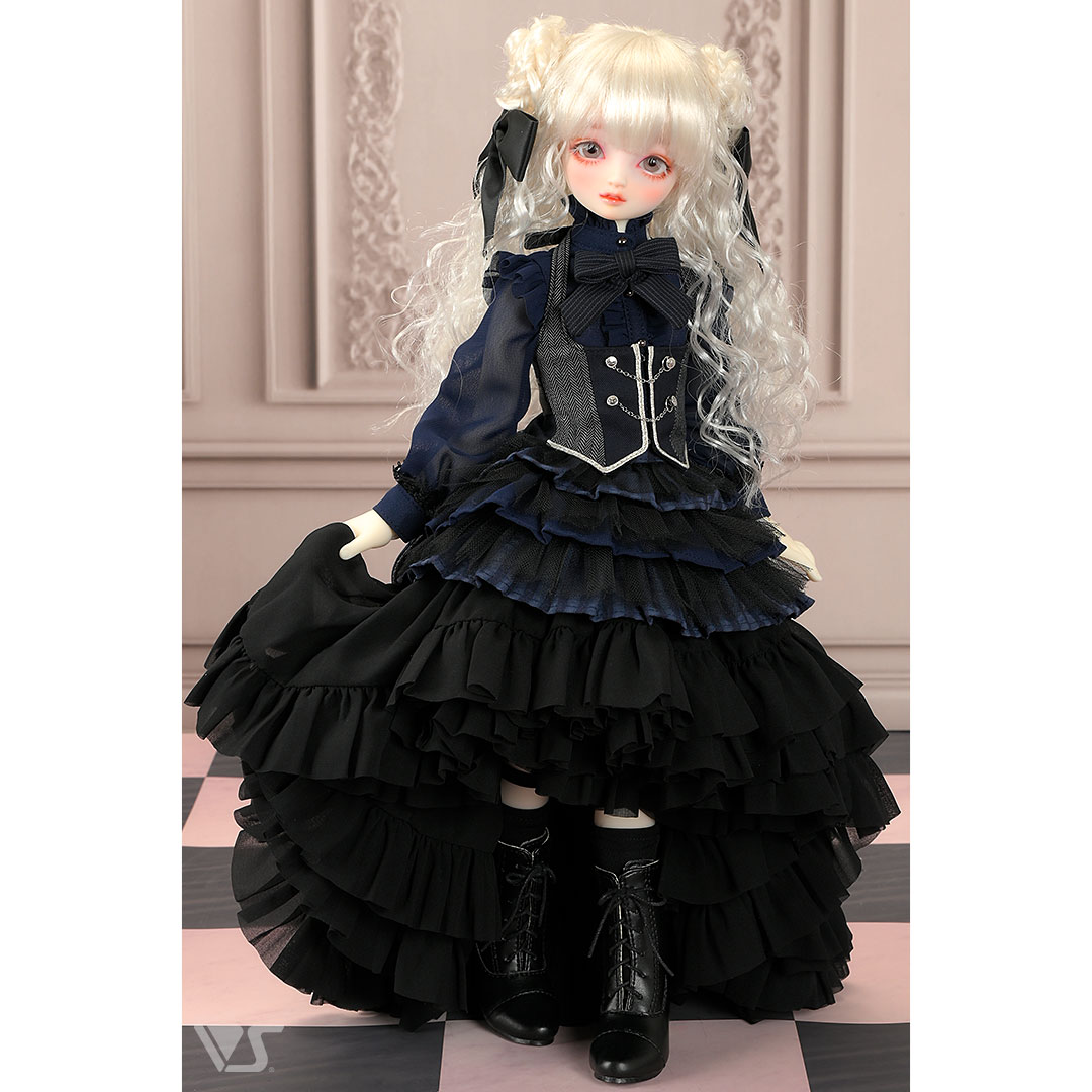 いくつもの紺青色生地とチュールレイヤーが織りなす