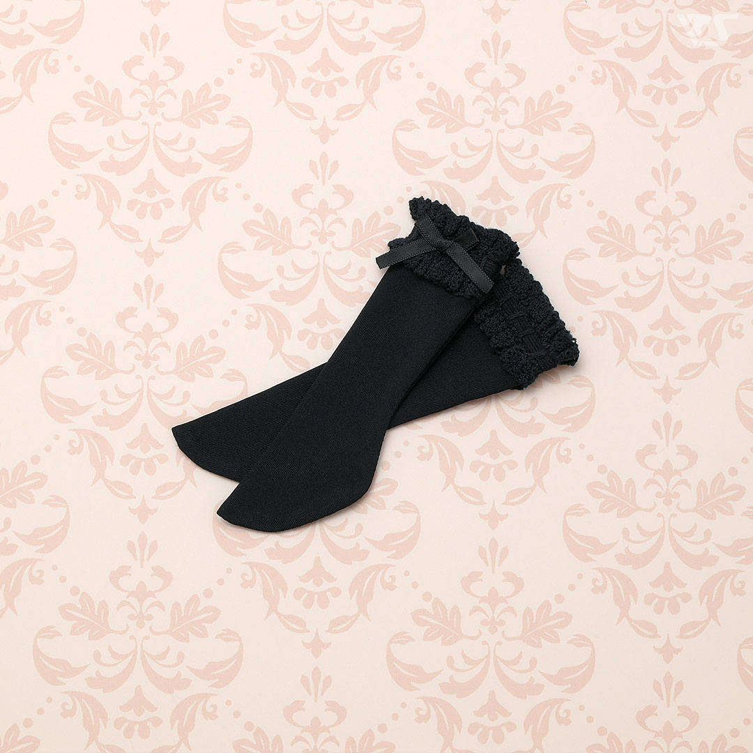可愛らしいコーディネートに大活躍なレース付きハイソックス。 サイドにリボンをあしらい、可愛く仕上げました♪