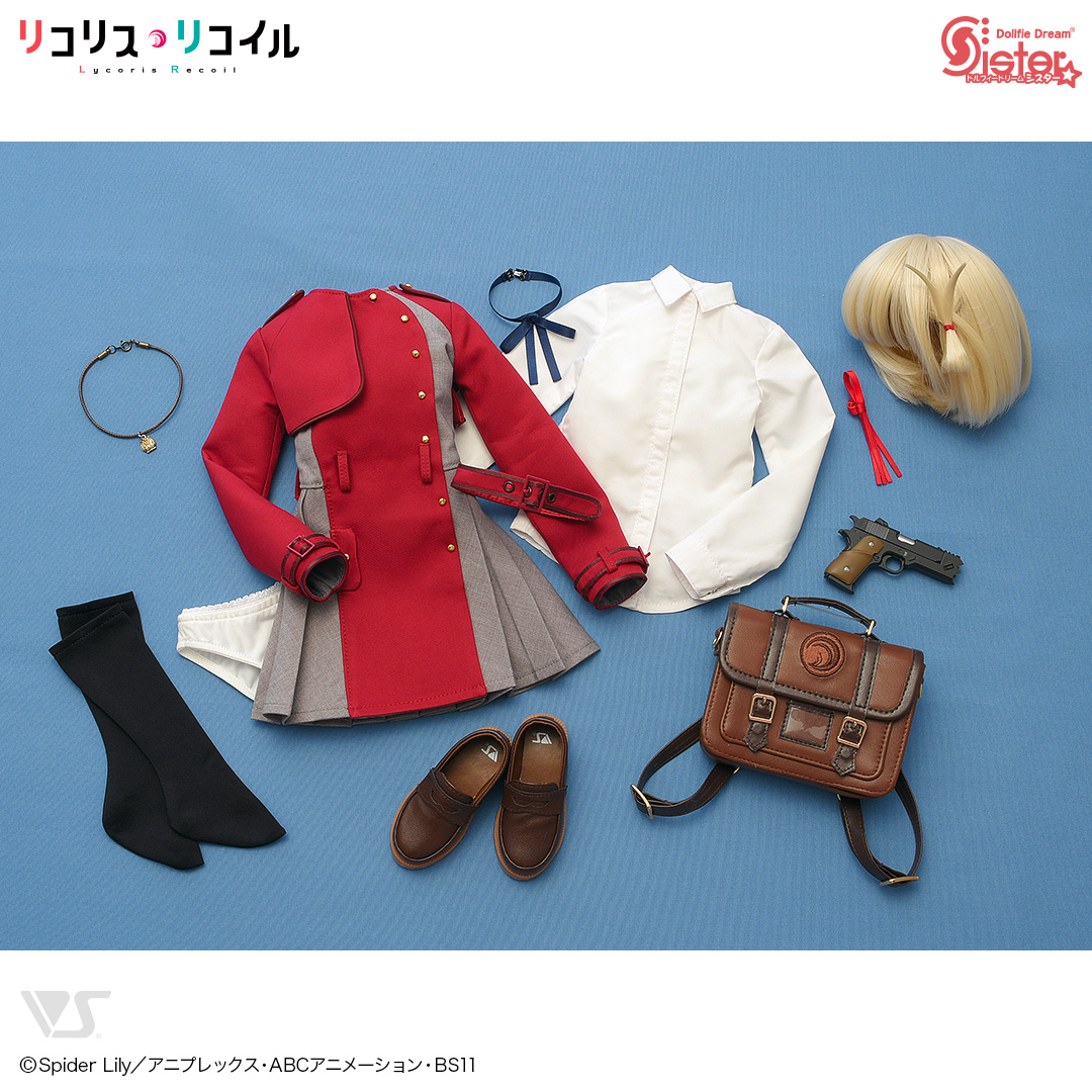 “都会の迷彩服”であるリコリス制服は、ジャケットとプリーツスカートが一体となった特徴的なデザインを忠実に再現。鞄も付属する豪華仕様です。