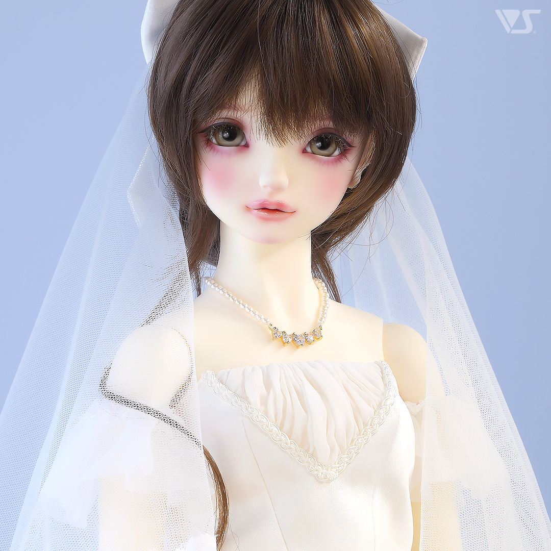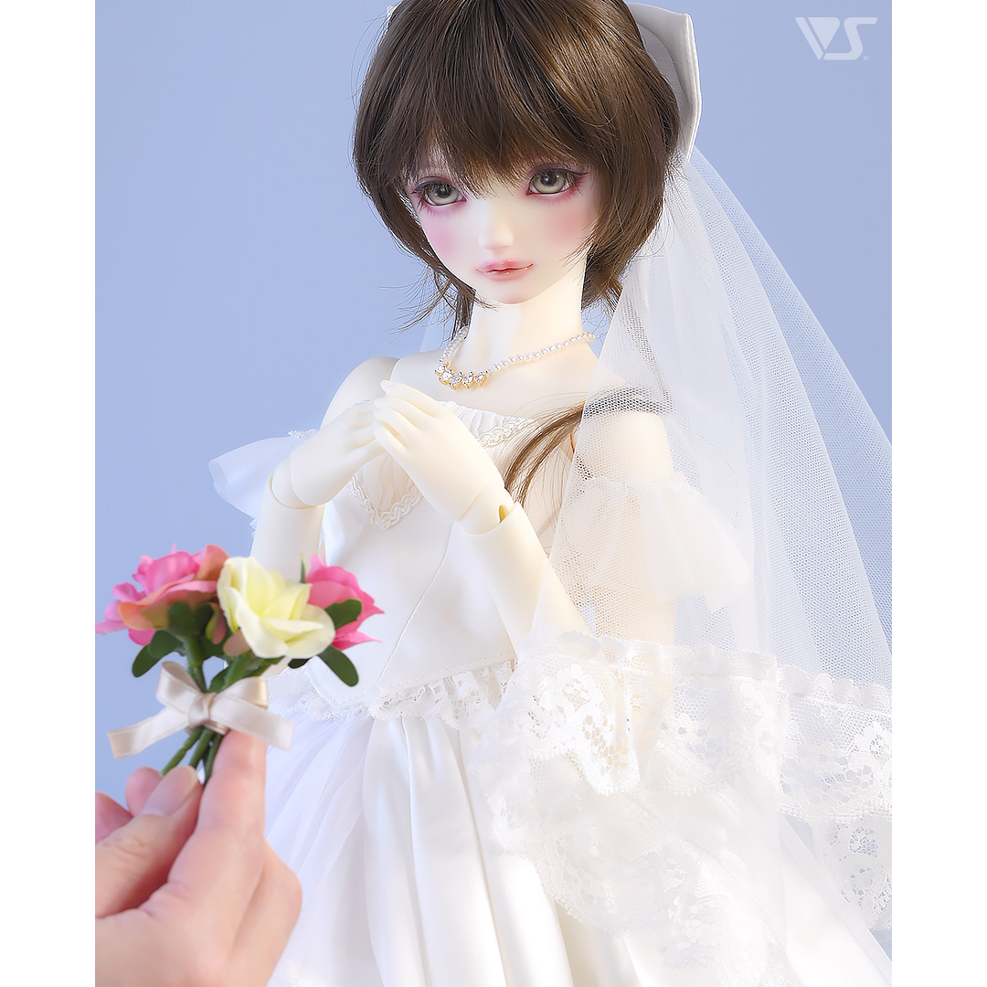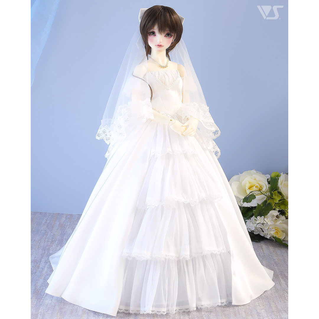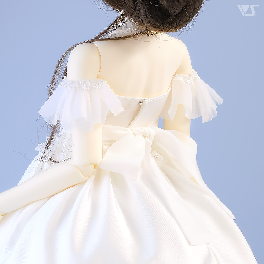DDサイズで立たせてあげると裾の長さはこんな感じになります♪豪華なドレスとなっておりますので、飾っても写真を撮っても映えること間違いなし!あなたの大切なドルフィーに、純白のドレスの贈り物はいかがでしょうか?
