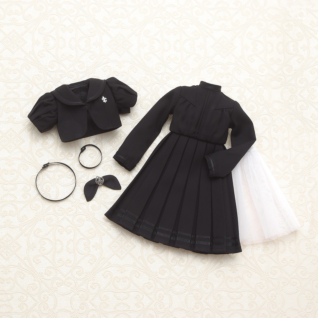 ショートジャケット、ストラップ2種付きリボンタイ、ワンピース、パニエ