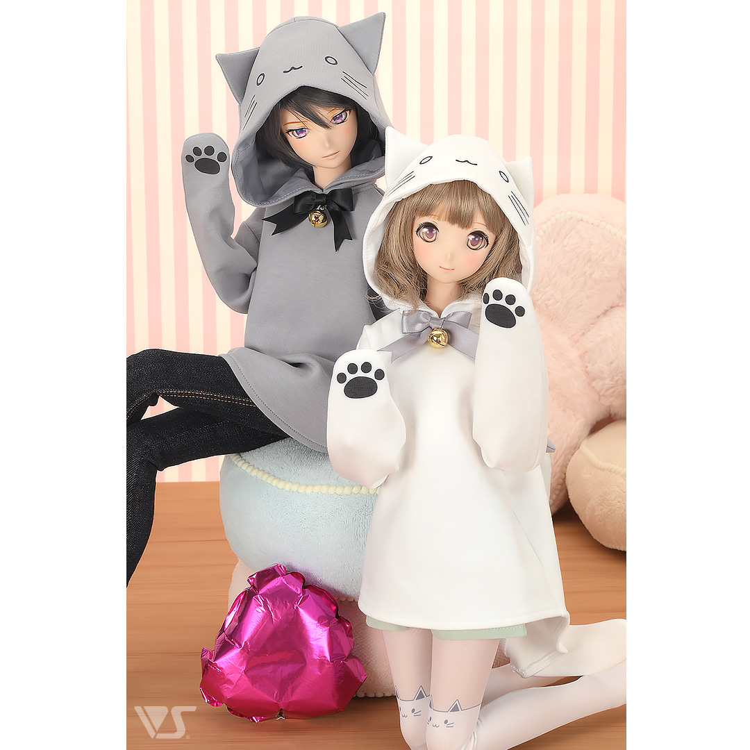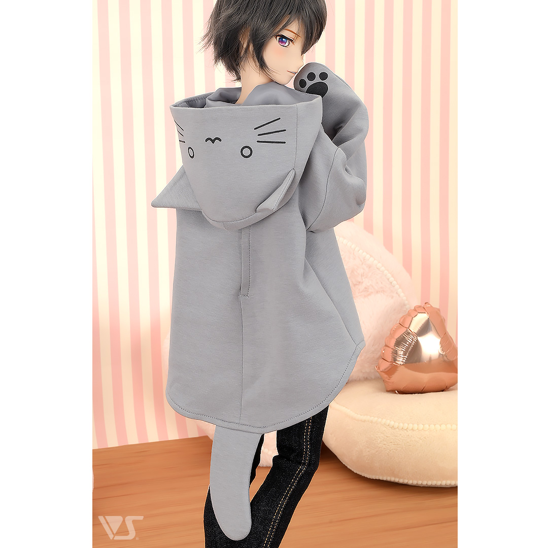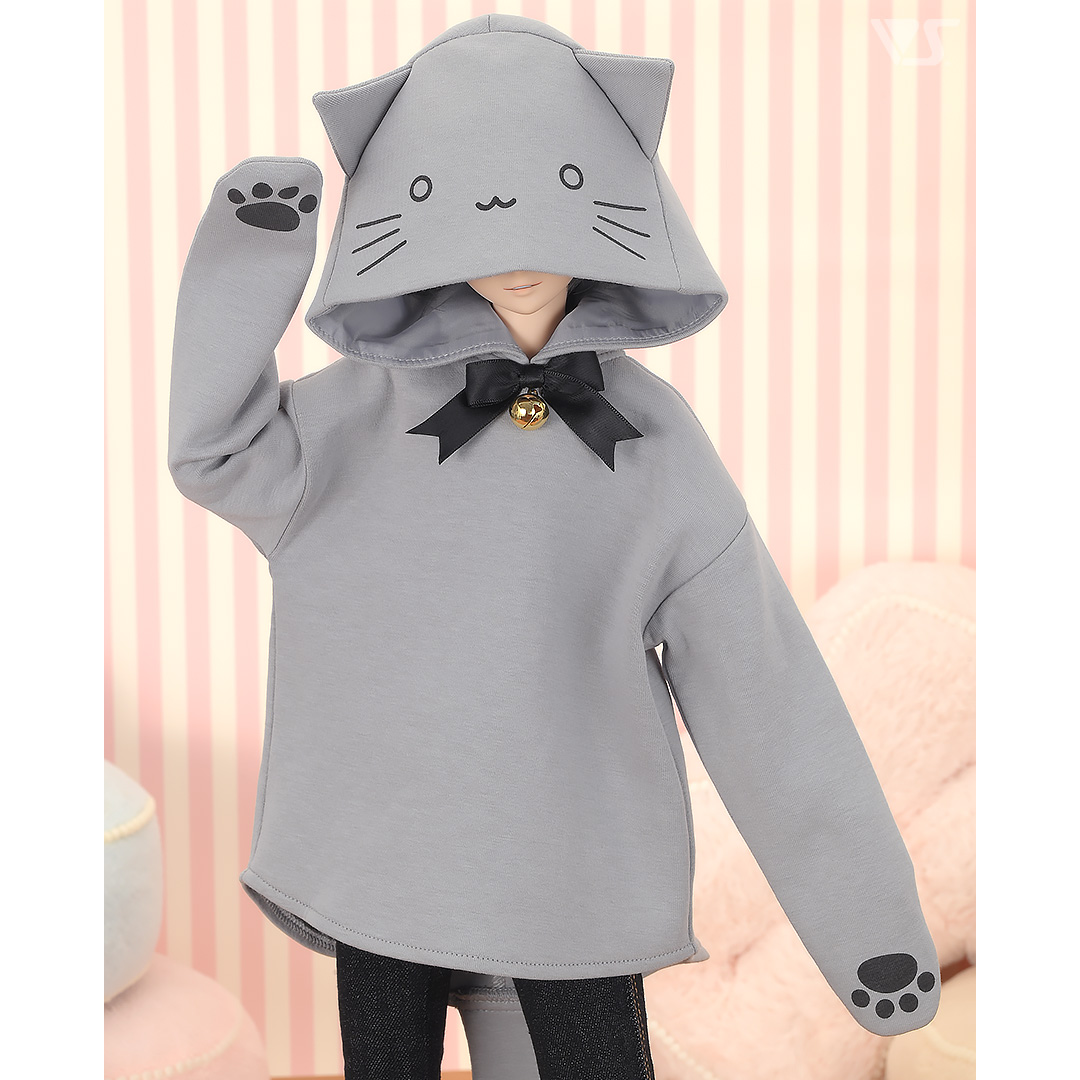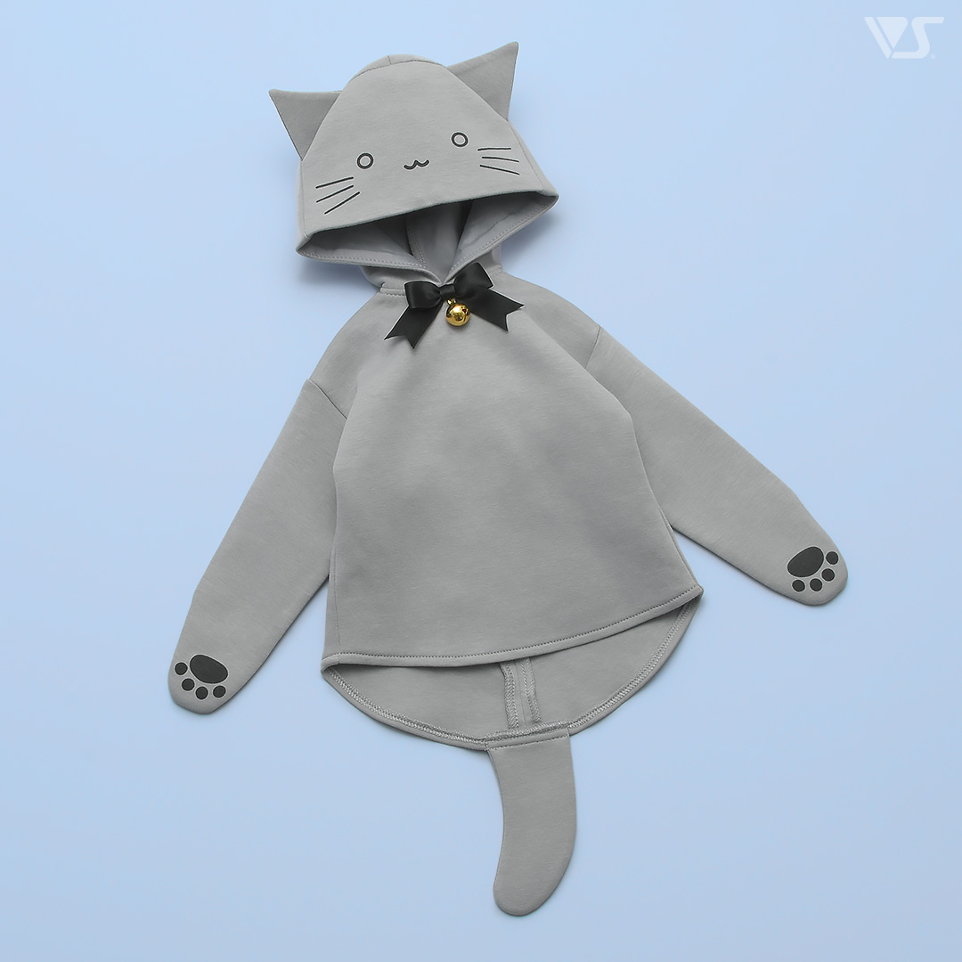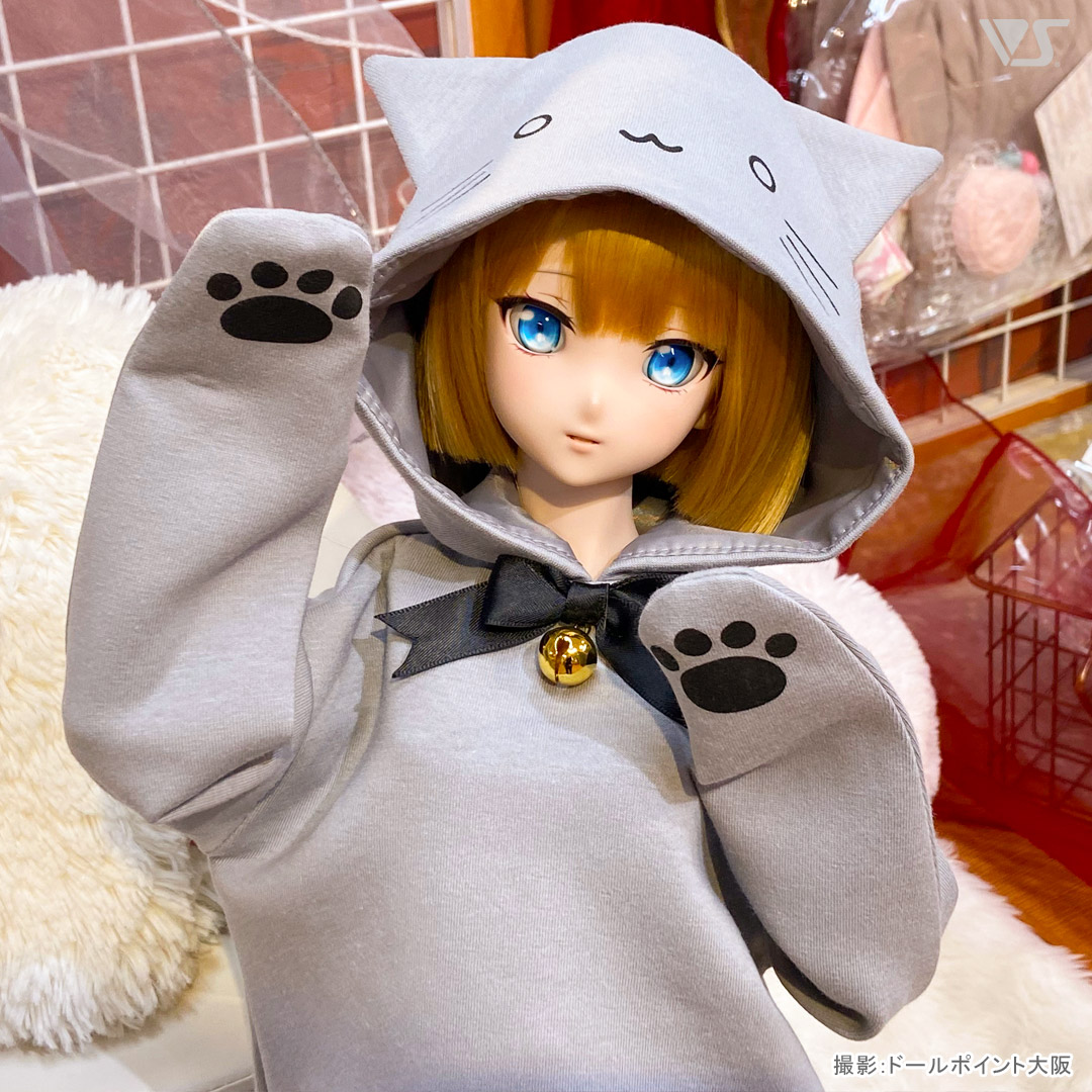 大人気のねこパーカーにDDサイズが登場!クールな女の子にもぴったりなグレーカラーです。フードのねこちゃんプリントがチャームポイント!深めに被ってもキュートですよ♪