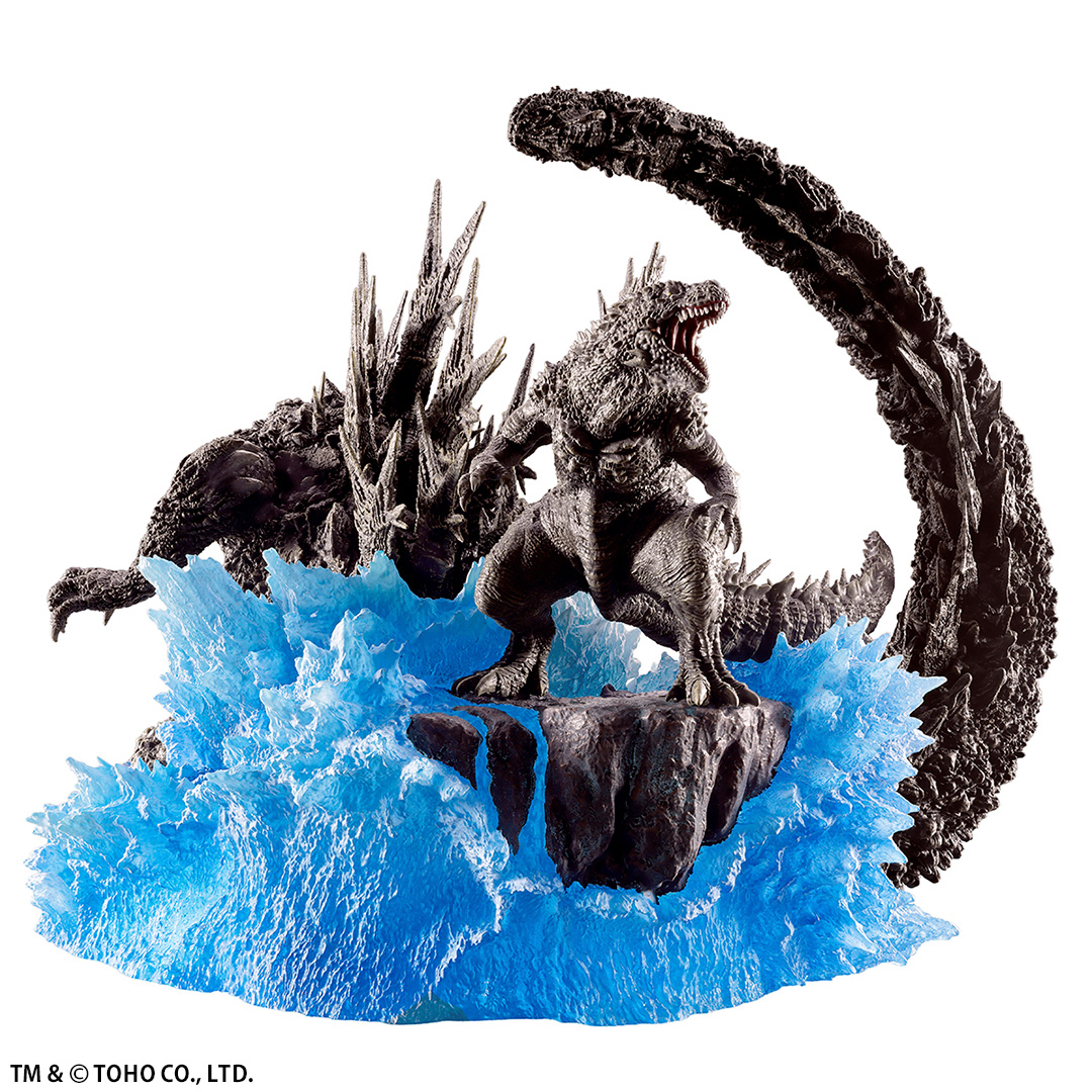 シリーズ最大サイズのイメージスタチューとして展開するDXシリーズは正面から見ると「G」のシルエットになるよう立体構成。更に大戸島の呉爾羅、機雷によるダメージ状態も効果的に配置! 長年培ってきた技術を余すことなく盛り込んだイメージスタチューの決定版で映画の興奮を再び呼び起こします。