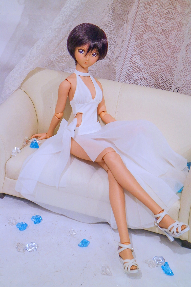 白い水着には小麦色の肌が映える♪ただ今ドリームチョイスで選択いただけるDD(タン肌)のモデルに着用してみました!