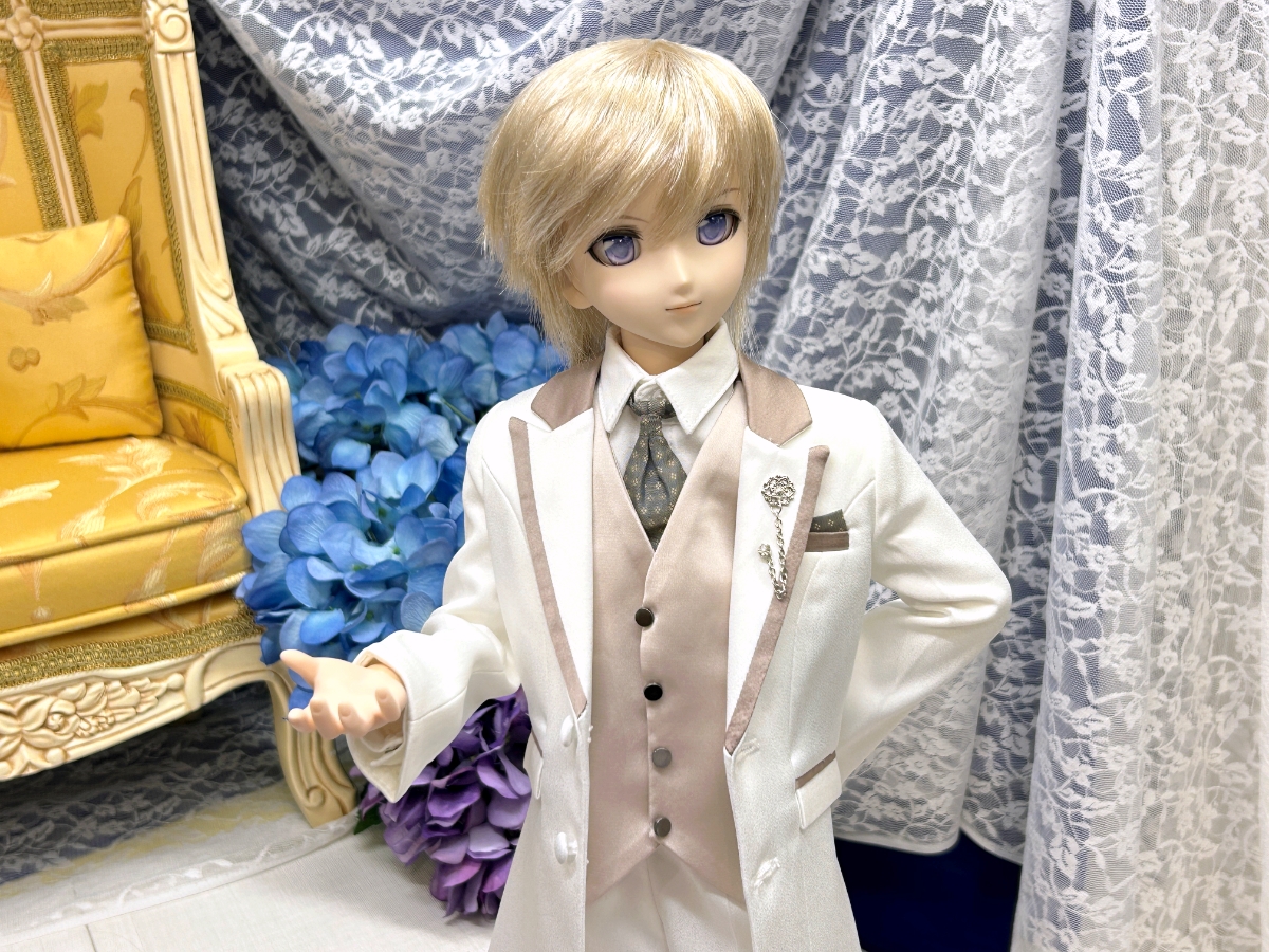 正統派ホワイトタキシードは、マットな質感が高級感溢れる大人のスタイル。