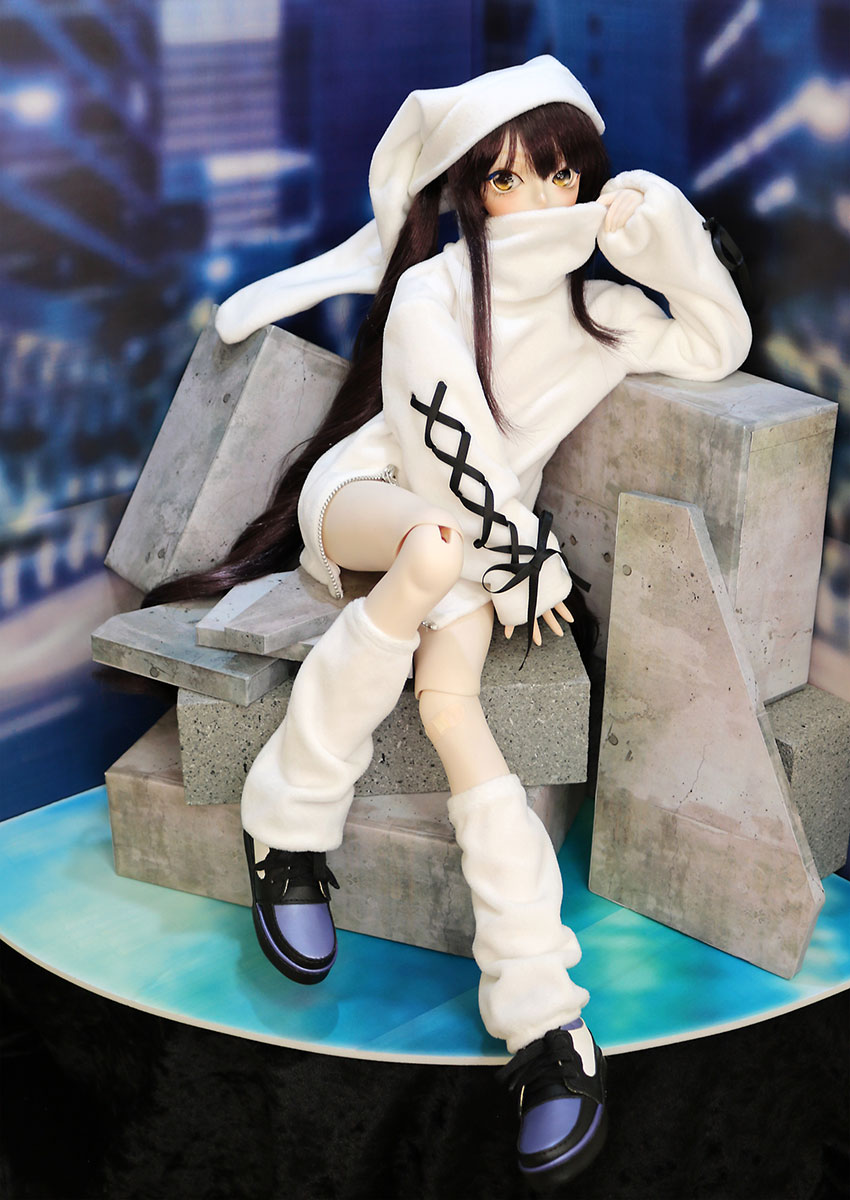 裾のジッパーを広げれば、座りポーズや動きのあるポージングを楽しめます!さらにハイネックで口元を隠せばいつもと違った表情で撮影することも出来ますよ♪