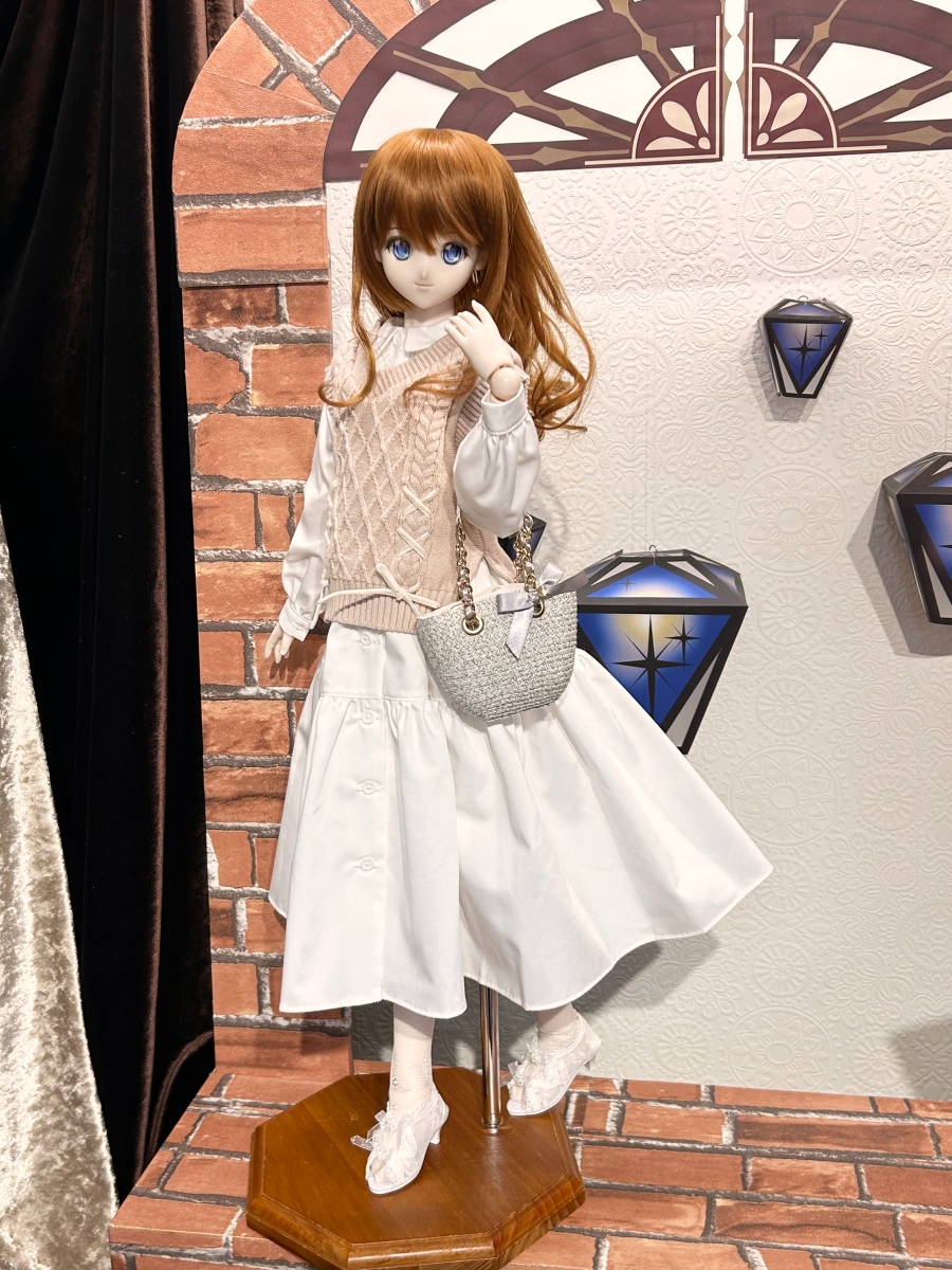 優しい雰囲気のベスト×ワンピはSDはもちろん、DDにもオススメ!甘さ控えめ、でもしっかりキュートな大人のコーデを楽しめます♪過去に登場したくすみ系のカラーのアイテムとの組み合わせもバッチリですよ。