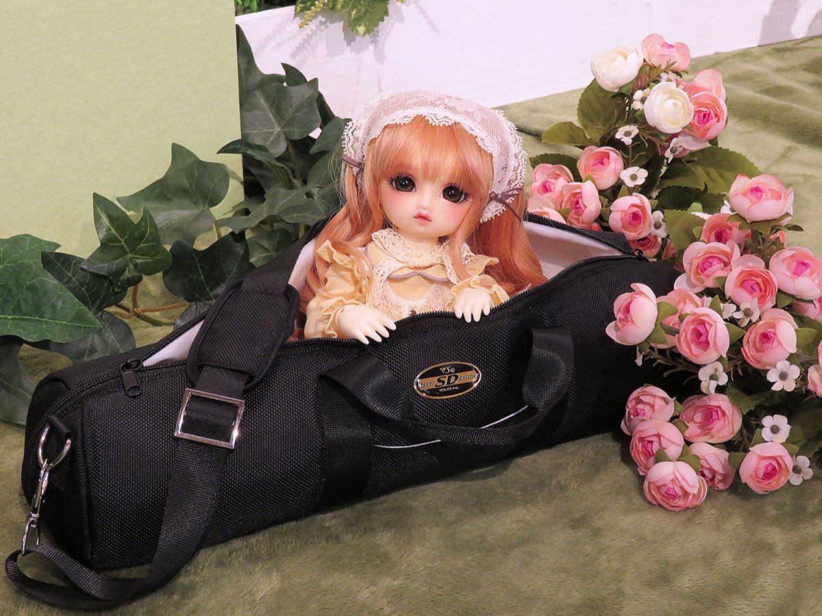 ドルフィーのお出かけには欠かせないキャリングケースですが…こちらは幼SDがぴったり収まるうえに、ドルフィーに持たせて撮影小物としても大活躍します!キャリングケースをご利用の際には、繊細なメイクを保護したり、まつげの乱れなどを防止してくれるフェイスカバーもお忘れなく。