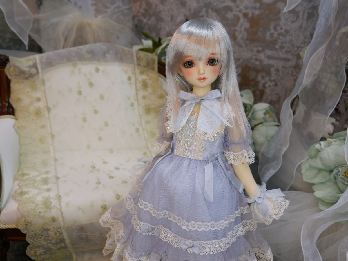 落ち着いた雰囲気の中にもエレガントさと愛らしさを兼ね備えた素敵なドレスです。遠目から見たときにもうっすらと輝きの見えるドレス生地にオーバースカートが重なって、とっても上品な仕上がりに。クラシカルなお嬢様スタイルがお好きな方におすすめしたいドレスです。