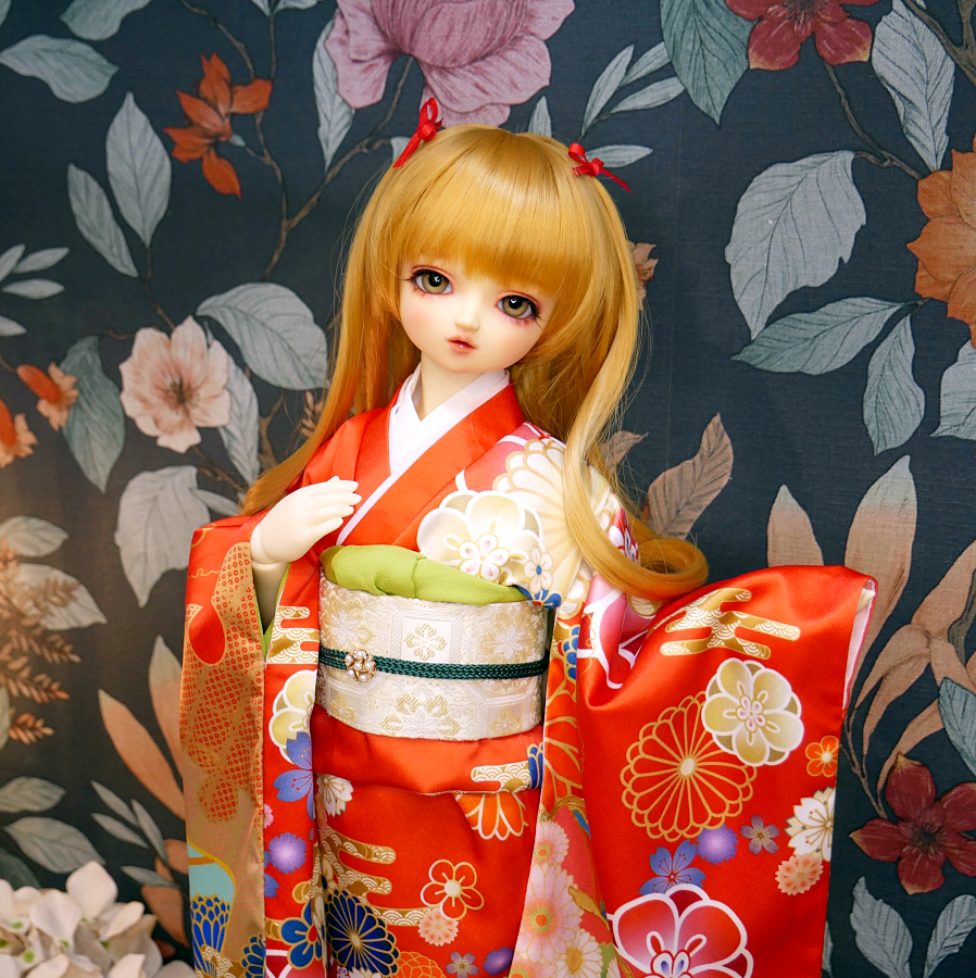 季節を問わずお召しいただける柄で、特別な日にぴったりの盛装となっております。艶やかな色味でとっても華やかな雰囲気になり、SDにもオススメの一着。帯揚げが別になっているので、おうちの子の雰囲気に合わせて色々とアレンジも出来ちゃいます。
