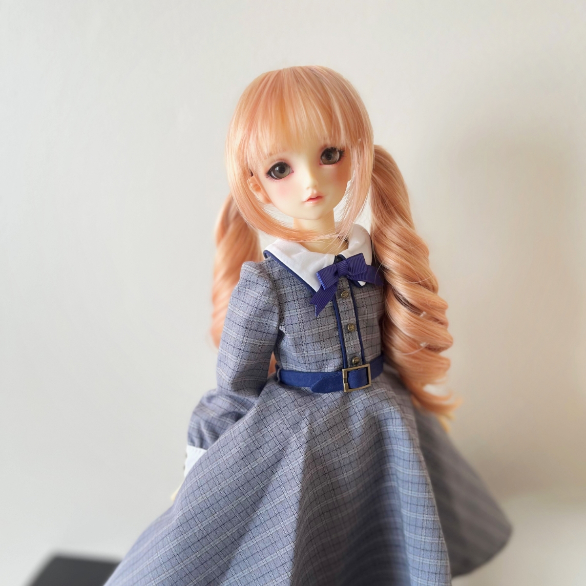 ボリュームたっぷりのスカートがふんわりと広がる、落ち着いた色味のチェック生地のワンピース。MDDはもちろんですがSDMにも大変オススメです。腰のベルトがアクセントになっており、メリハリの利いたスタイルになります。ベルトなしで着用してもクラシカルなワンピーススタイルになりますので色々な表情を見せてくれます。