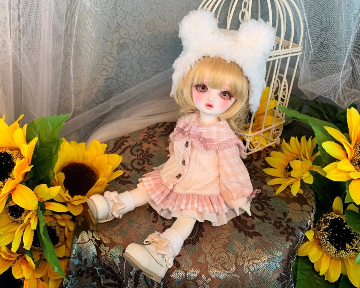 くまさんモチーフのセーラー襟にフリルたっぷりの裾がふんわり広がりとびきりキュート♡ちいさなくまさんボタンや柔らかいピンクチェック柄のかわいさがぎゅっと詰まったワンピースです。同時販売の「くま耳帽子(バニラ)・ちび」と合わせるとより可愛さUP!