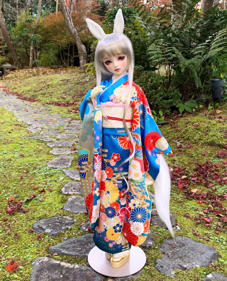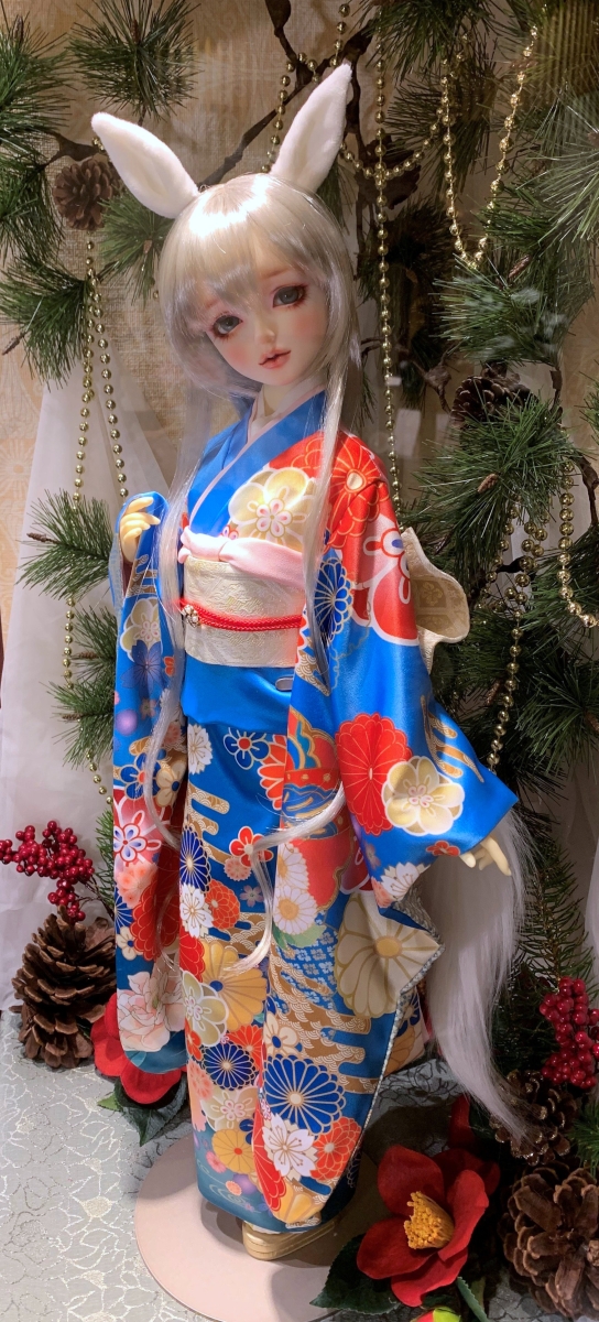 正絹のような生地は引っ掛かりがなく、露草色のあざやかな青色はうつろいゆく季節を彩ります。日本庭園での撮影にもぴったり!お引きずりスタイルとおはしょりスタイルの2パターンの着せ付けができて◎新年を迎えるために特別な一着としていかがでしょうか