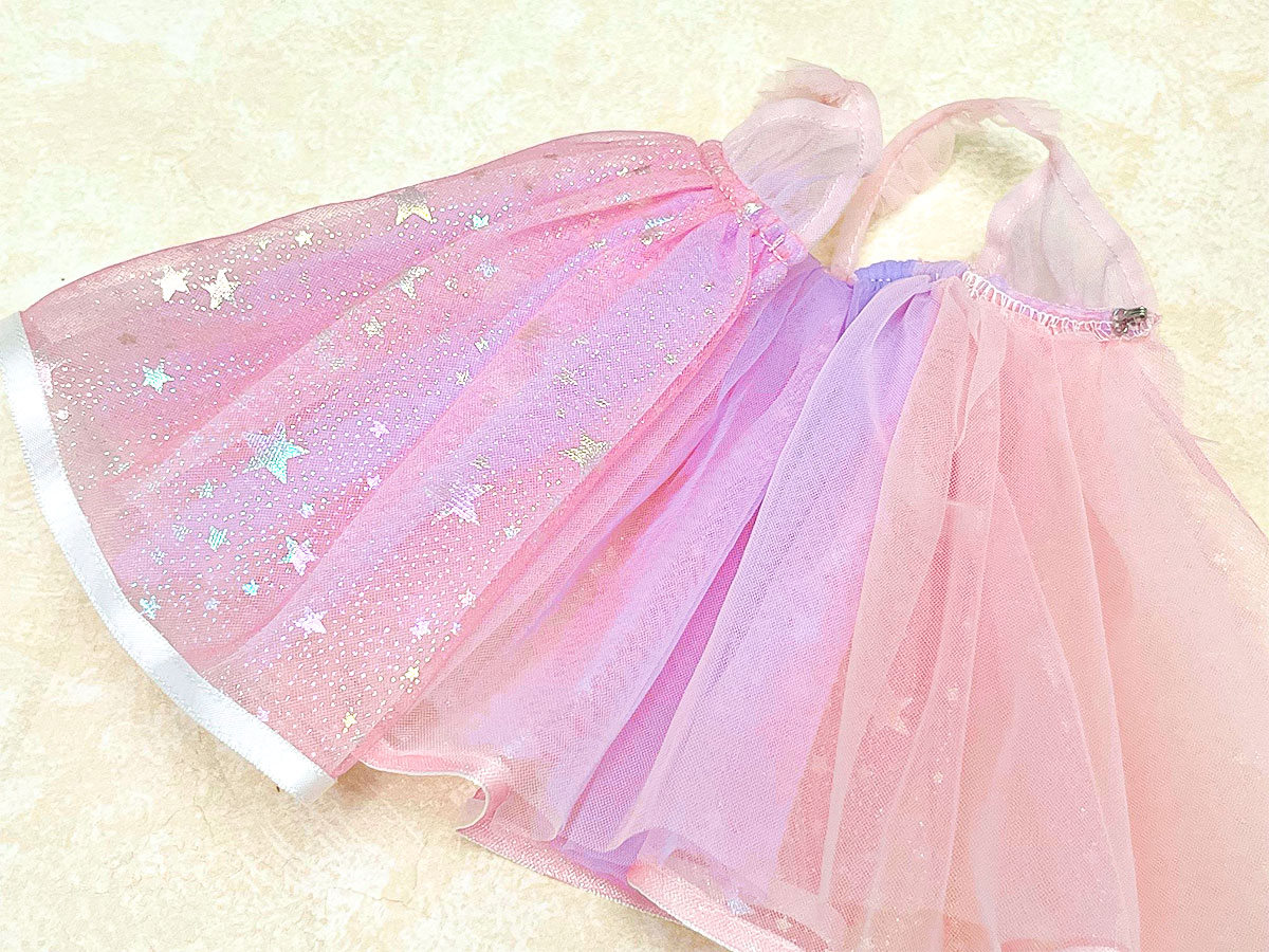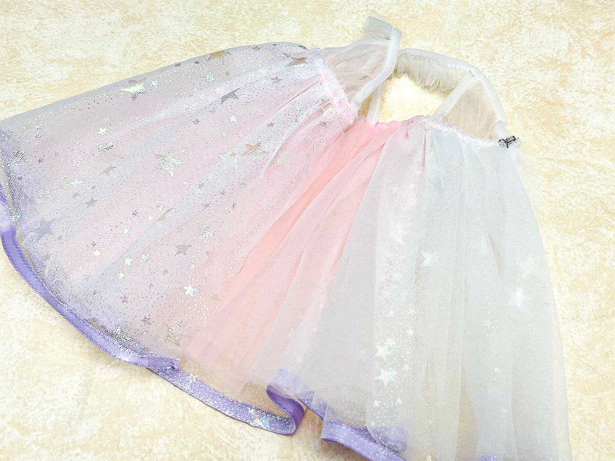 見る角度によって、スカートの色合いやお星さまの輝きが違って見える、まさにドリーミィなドレスセットです☆
