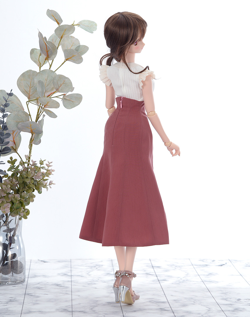 スカートは綺麗なボディラインが出るように、ウエストとヒップはボディにフィットさせ、裾に向かって広がるシルエットにこだわって型紙を作成しました。